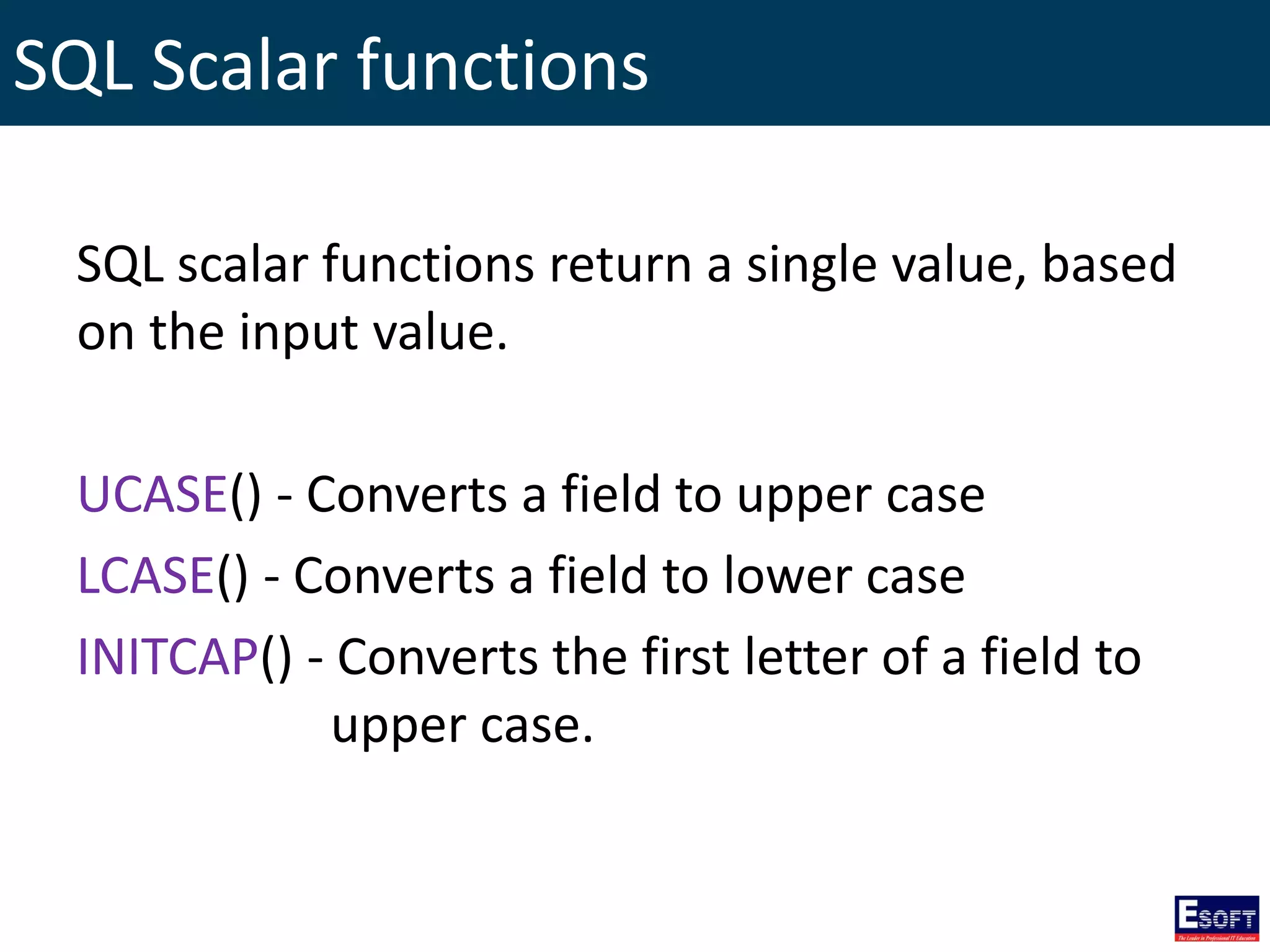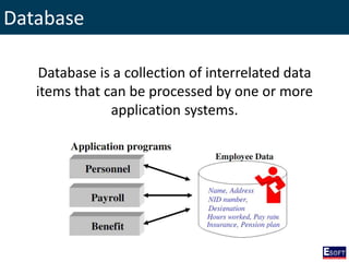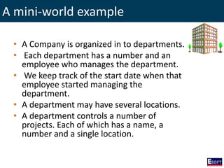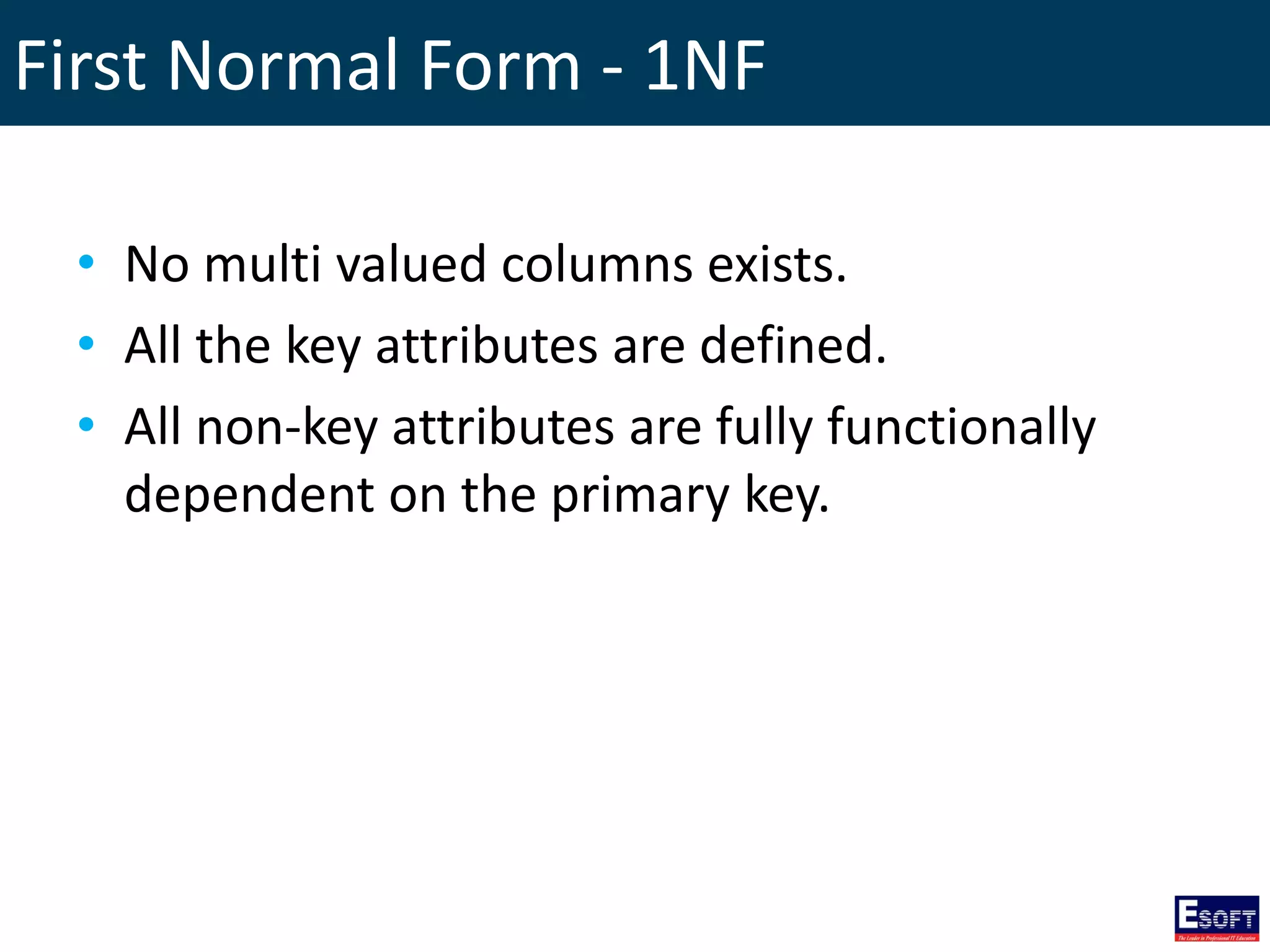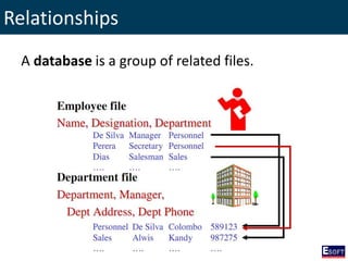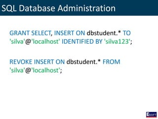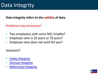 The document outlines a comprehensive curriculum for a Diploma in Software Engineering, focusing on Database Concepts. It covers a variety of topics including database systems, design methodologies, normalization, and SQL commands essential for database management. Key concepts such as relationships, data integrity, and entity-relationship modeling are also detailed to provide foundational knowledge in database engineering.