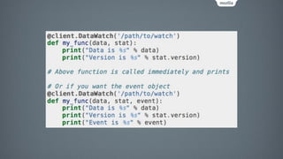 The document discusses distributed coordination using Python, focusing on Apache Zookeeper as a centralized service for managing configuration, synchronization, and group services. It outlines the hierarchical data structure of Zookeeper, basic commands, use cases, and how to handle failures in distributed systems effectively. The emphasis is on leveraging existing tools like Zookeeper and Kazoo to manage complexities in distributed coordination.
