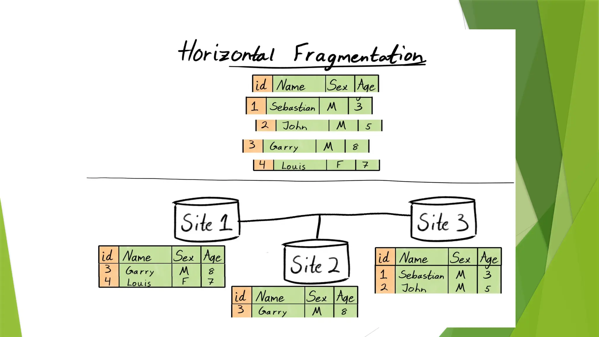 • In the example, all parts of the original database (P1, P2, P3) are fully replicated to all