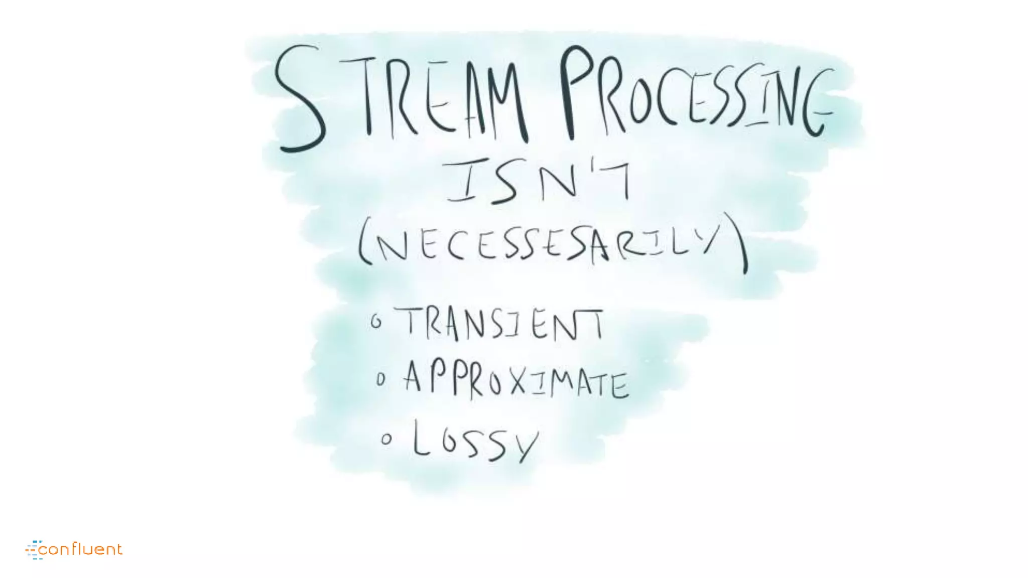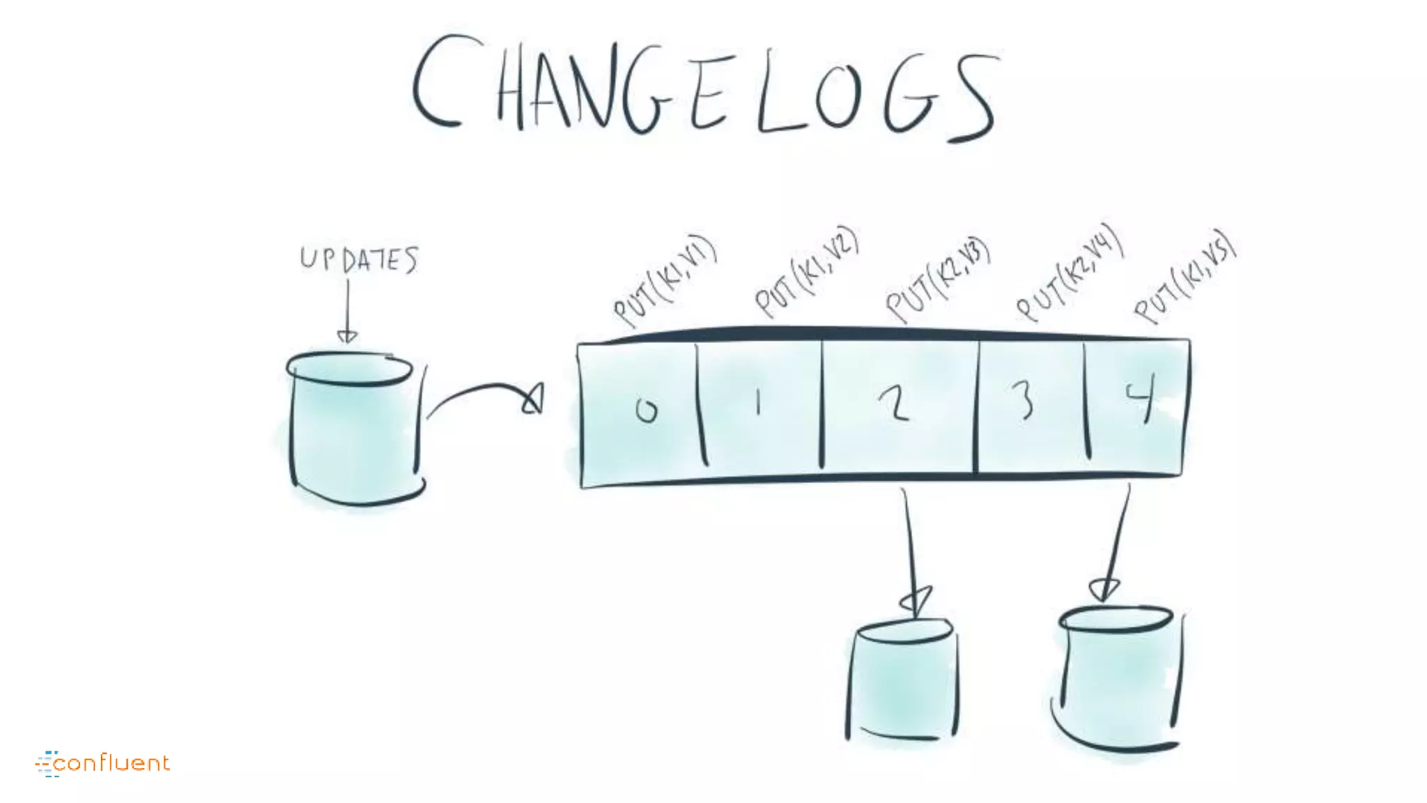 • #52 In fact, we talked about change logs for replicating updates to a mutable data store like a relational database. And Kafka Streams works really well with this type of stream.
