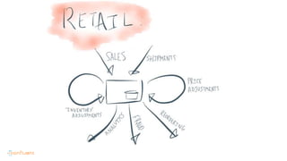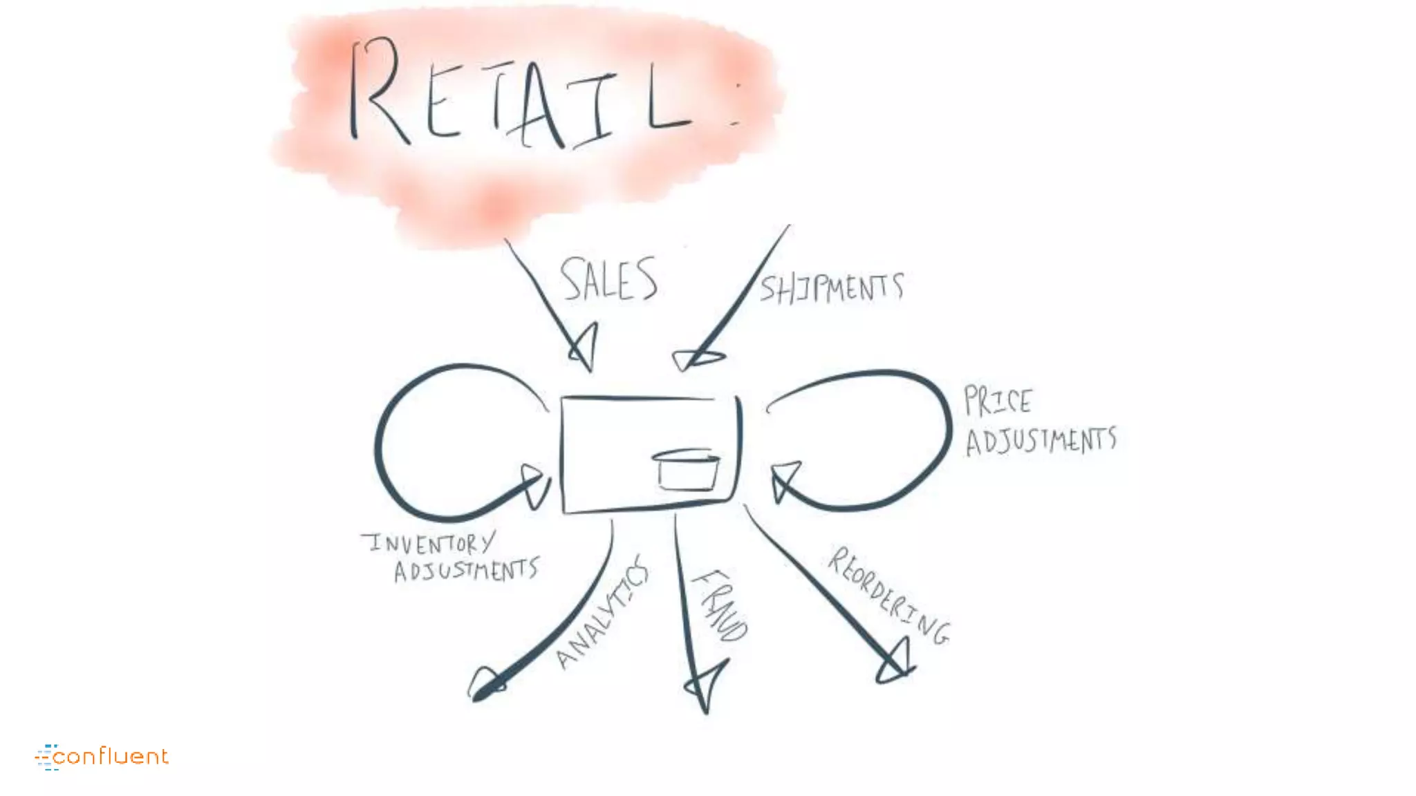 • #9 Let’s look at an example I like because most people understand the domain: Retail. This could be ecommerce or a big box retailer…doesn’t really matter since we’re going to keep this high level. You can think of the computation a retailer does as processing a sequence of sales and new product shipments, managing inventory, adjusting prices, handling logistics for fullfillment or stocing warehouses, and dealing with frad and analytics, etc. Which of these operations that this business does is synchronous and which is asynchronous? Well clearly the sale is synchronous. You give me money and I give you your product (or a promise of delivery of your product). That is the definition of a synchronous action. But pretty much everything else on this slide is asynchronous. So how is that stuff implemented? Well I think one of three things happen: It get’s made accidentally synchronous—either in a monolithic app or in a microservice It get’s run as a batch job once a day...super async You use a messaging system