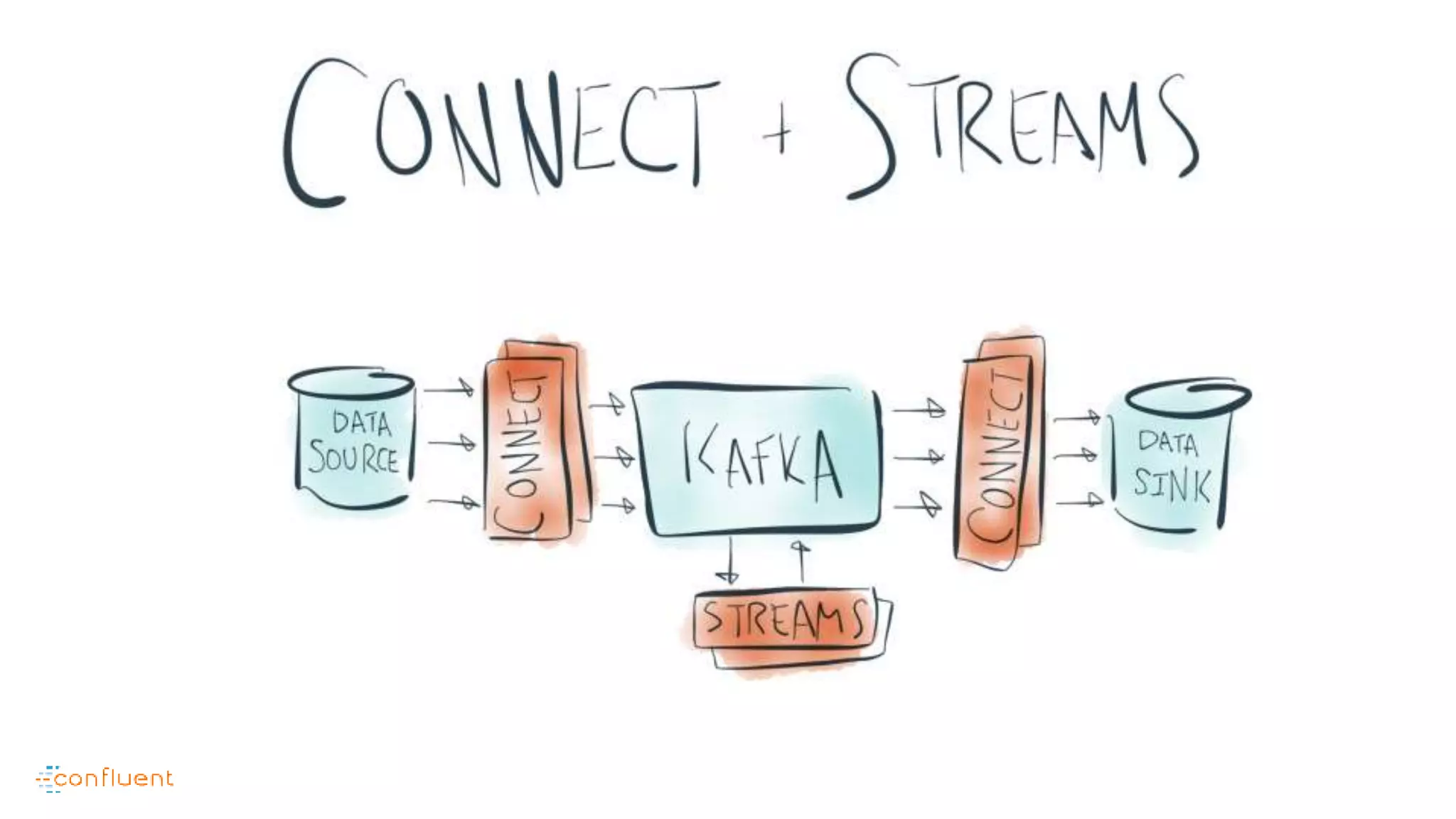 • #55 In fact the connect and streams apis work really well together. If you think about ETL, meaning extract/transform/load, like you would have for a datawarehouse, Connect is doing the E and the L, the extracting and loading, except it is doing them in real-time as a continuous stream. And Streams is doing the T, the transformation...and of course it is also streaming.