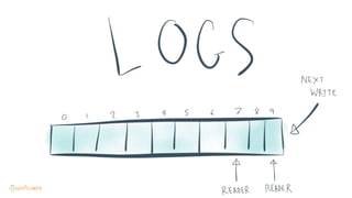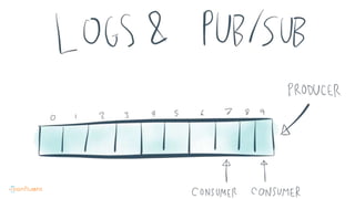 • #27 We talked about how a table can be represented as a stream of updates and this is a common use of a log. Many change data capture solutions work this way, they capture a log of changes from a database and replication it to destination databases. And in fact, Kafka has special support for this type of log.