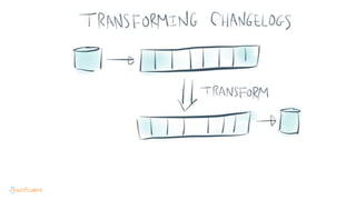 • #53 Instead of just taking the change stream out of a source database, and putting it in a destination, it allows you to transform that stream on the fly. In effect this lets you create a kind of materialized view computed off the input. And using the connect api you can replicate that stream into any type of destination store.