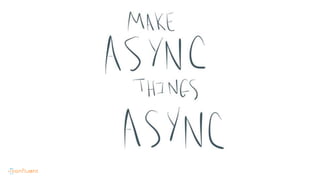• #8 What do I mean by that? Obviously if you are displaying a UI to a user and that UI needs some data, and you need to call a service to fetch that data then you can’t make that fetch truly asynchronous because you can’t put data in a UI until you have the data. You can defintiely make it non-blocking—other work can happen while you are waiting—but you can’t not wait. So are there things that can be asynchronous? Hell yes.