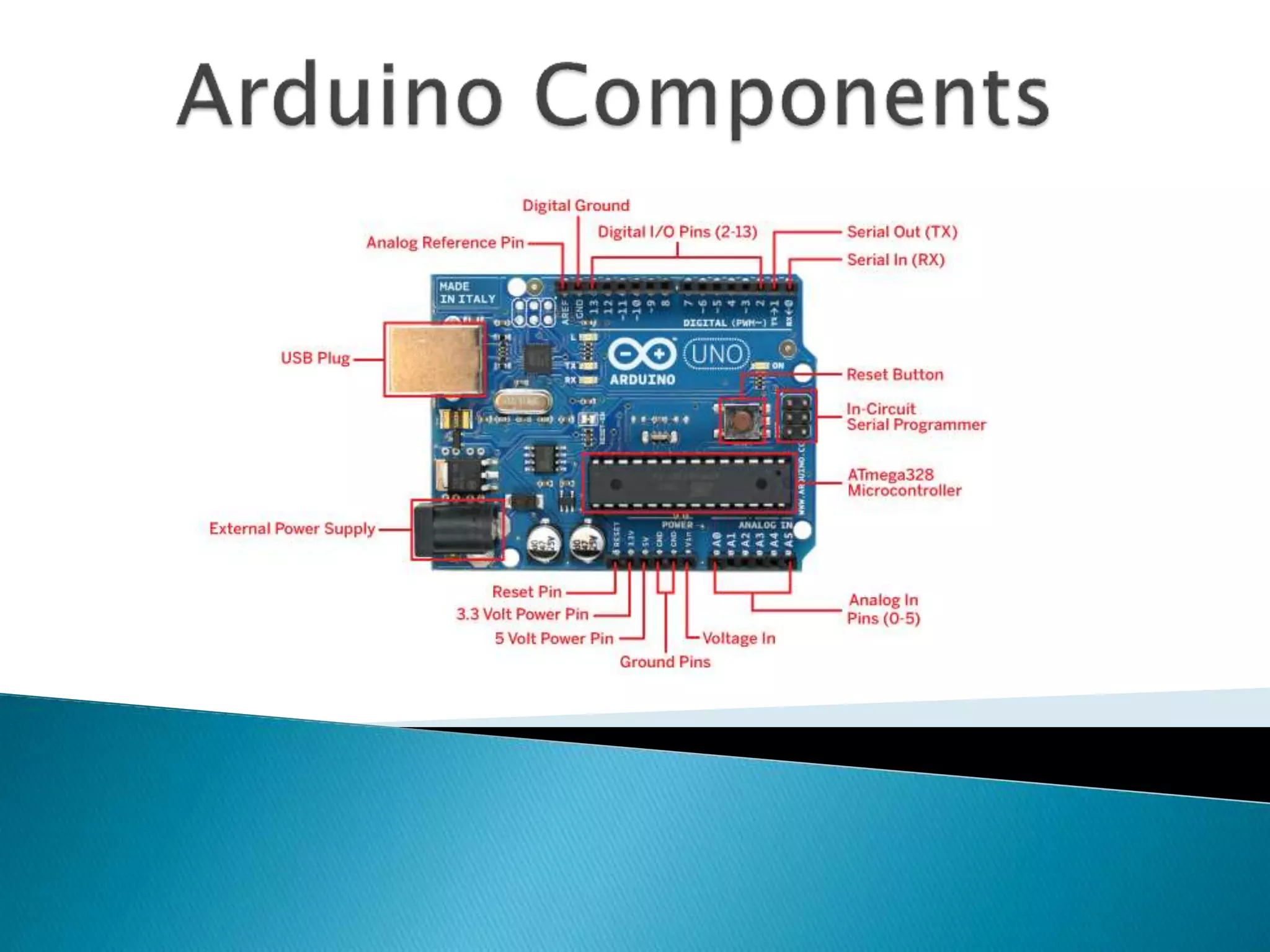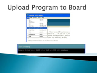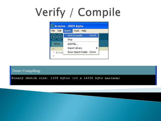 The document discusses Arduino, an open-source prototyping platform introduced in 2005 to provide students with an inexpensive yet programmable microcontroller for connecting sensors and actuators in electromechanical devices. Arduino boards like the Uno, Mega, and LilyPad allow users to control outputs like LEDs or motors through inputs like sensors for GPS, WiFi, accelerometers through an intuitive programming environment. Examples of Arduino projects include smart home controllers, spy drones, robots, and automated systems like fish feeders or fan speed controls.