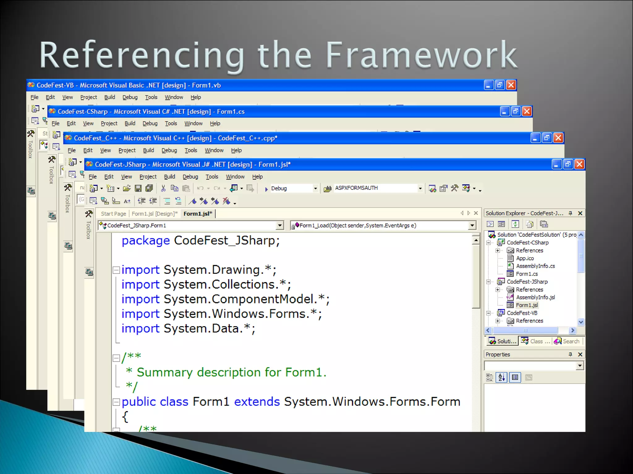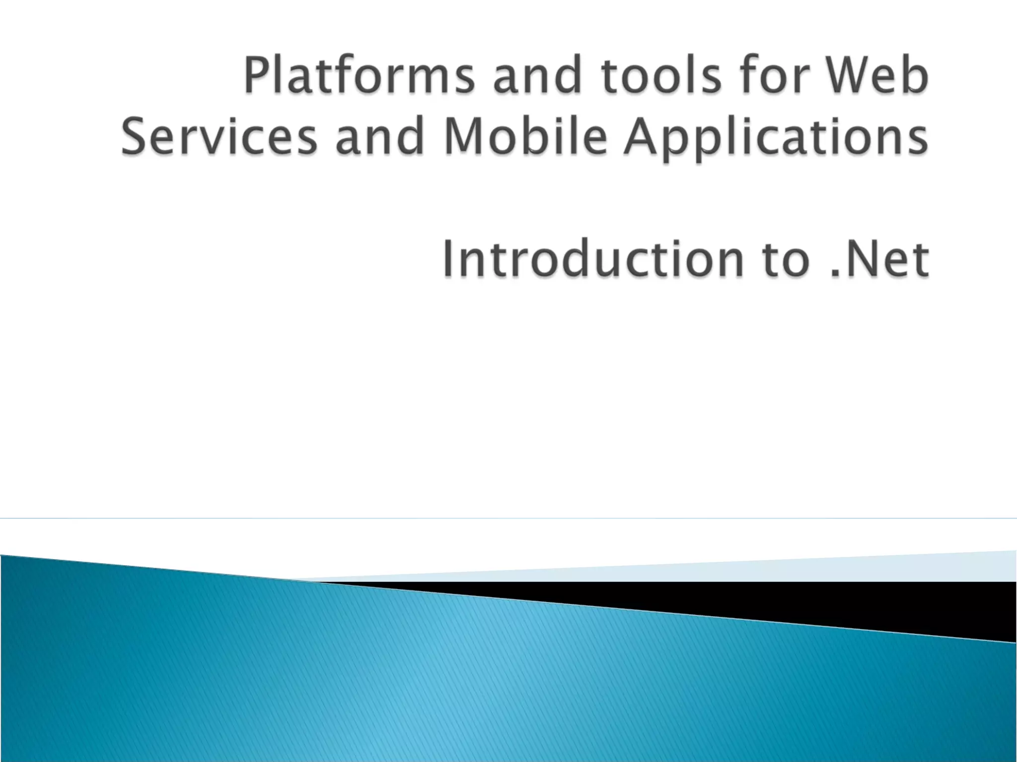 The document discusses web services support across the Microsoft platform. It covers tools, clients, services, servers, and experiences/solutions available for .NET Framework, Windows API, Common Language Runtime, and various Microsoft programming languages. Key elements discussed include the .NET Framework, Common Language Runtime, Windows operating system, and Visual Studio.NET.