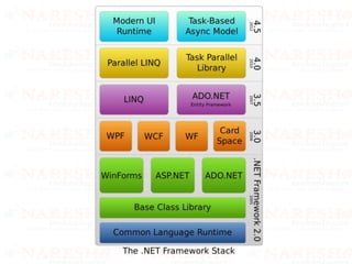 .NET is a development framework created by Microsoft that allows developers to easily create applications. It provides libraries and functionality that developers commonly use. .NET supports multiple programming languages and allows programs written in different languages to interact. Code written for .NET executes within the Common Language Runtime (CLR) environment, which handles tasks like memory management, security, and interoperability to make development easier.