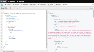 The document outlines how to decouple Drupal from Vue.js using GraphQL for a scalable project, highlighting the advantages of using Vue.js compared to frameworks like Angular and React. It introduces Nuxt.js as a minimalist framework for creating server-side rendered applications and provides examples of Vue.js syntax for data binding, event handling, and routing. Additionally, it discusses the integration of GraphQL with Drupal to improve API efficiency and offers a link to a demo project showcasing a blog built with these technologies.