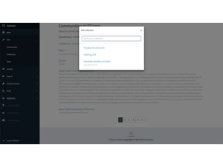 The document discusses the Angular UI from a user perspective in DSpace, focusing on various user roles such as visitors, authors, and administrators. It highlights improvements in navigation, speed, and usability through the use of REST requests and JSON returns. The document also mentions the potential for multi-language support and themes.