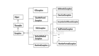 This document discusses exception handling in Java programming. It defines an exception as an unwanted event that interrupts normal program flow. Exceptions can be handled in Java to provide meaningful messages to users rather than system errors. The document covers checked and unchecked exceptions, try-catch blocks, multiple catch blocks, finally blocks, and throwing custom exceptions. It provides examples to illustrate exception handling concepts in Java.