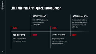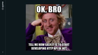 This document discusses code examples for creating a basic "Hello World" API endpoint using different web application frameworks like ASP.NET Core, Express, and WebApplication. It shows how to setup a GET route that returns the string "Hello World" using controllers, middleware, and other framework-specific features in each case. It also includes code for basic RESTful API endpoints for a ticket ordering system including getting tickets, checkout, and validation.