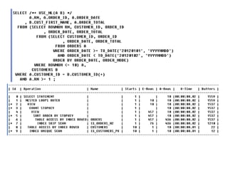 • 위 실행계획은 ORDERS와 CUSTOMERS를 JOIN한 후에 SORT를 하고 있다.