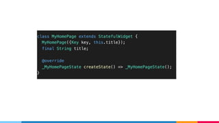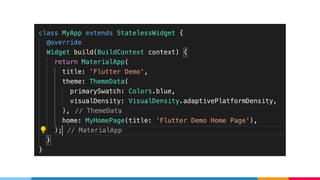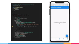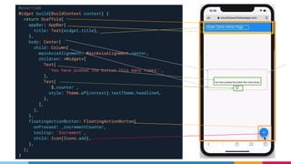 Flutter is an open-source UI software development kit created by Google that allows developers to build mobile, web, and desktop applications from a single codebase. It uses widgets to build applications and provides tools for compiling code to native code. Flutter includes a rich set of widgets, support for plugins, and capabilities for hot reloading and running applications during development. Apps built with Flutter are high performance, can run on multiple platforms, and Flutter provides free and open tools for getting started with development.