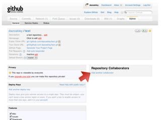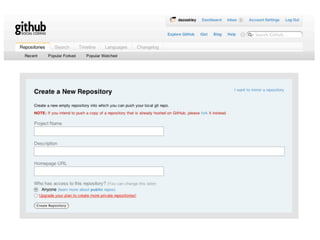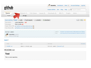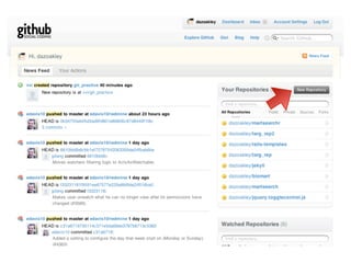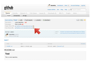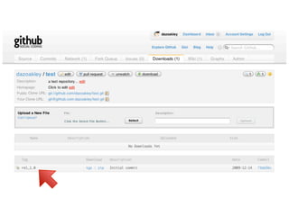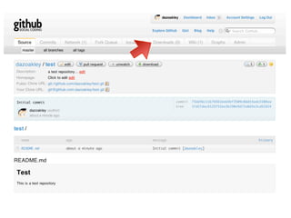 The document provides an overview of version control systems and introduces Git and GitHub. It discusses the differences between centralized and distributed version control. It then covers the basics of using Git locally including initialization, staging files, committing changes, branching and merging. Finally, it demonstrates some common remote operations with GitHub such as pushing, pulling and tagging releases.