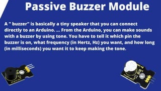 1) Objectives to define and explain the construction and working of active and passive buzzer sensors, and create a project using them.