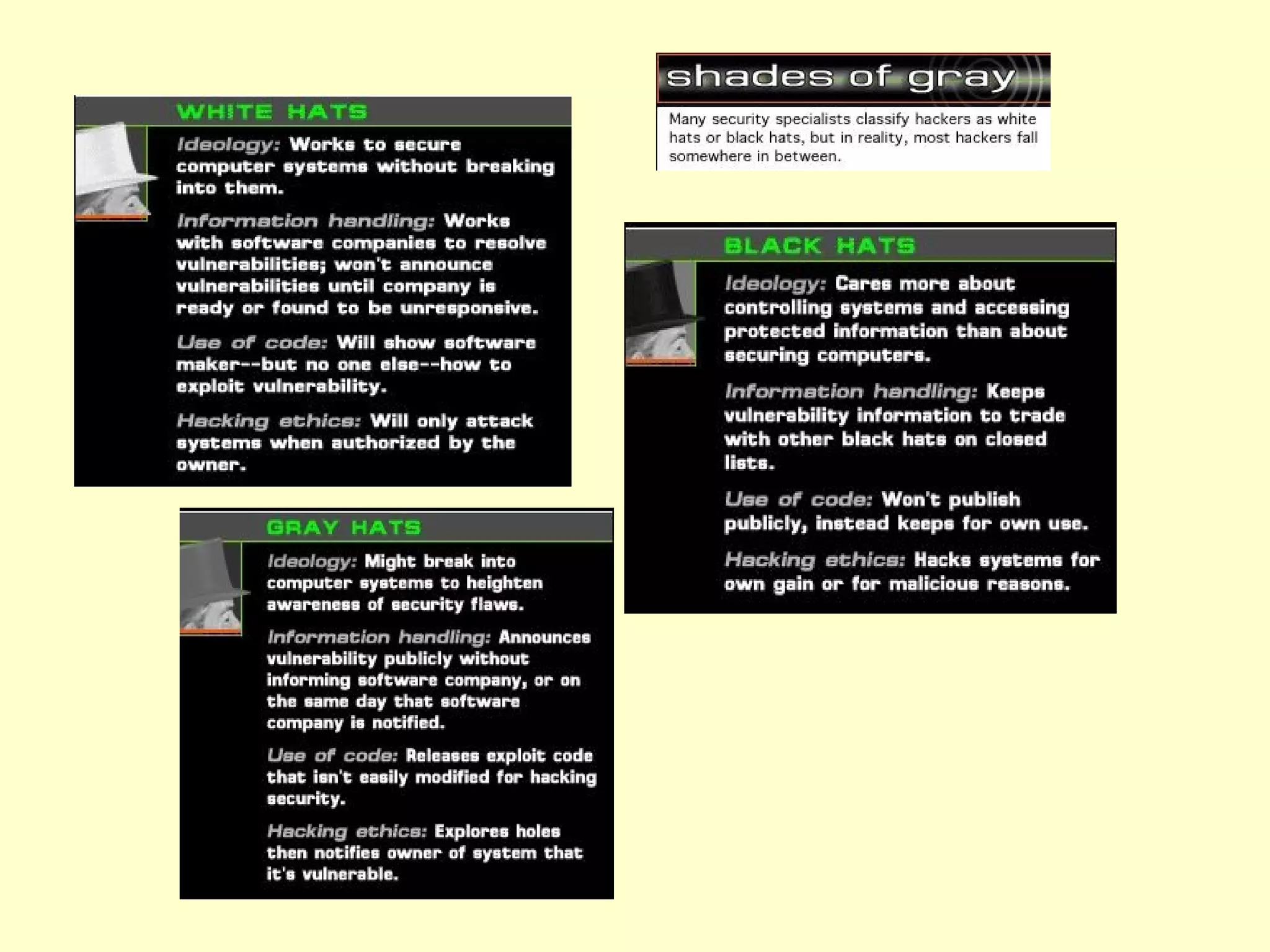 Hacking, cracking, and hacktivism have a complex history. Early hackers believed that information should be free and decentralized. Over time, laws like the Computer Fraud and Abuse Act were passed to criminalize unauthorized computer access. Now, some hackers conduct ethical hacking and penetration testing to improve security. However, crackers aim to damage systems, while hacktivists hack for political reasons. Debates continue around definitions and the ethical implications of different forms of hacking activity.