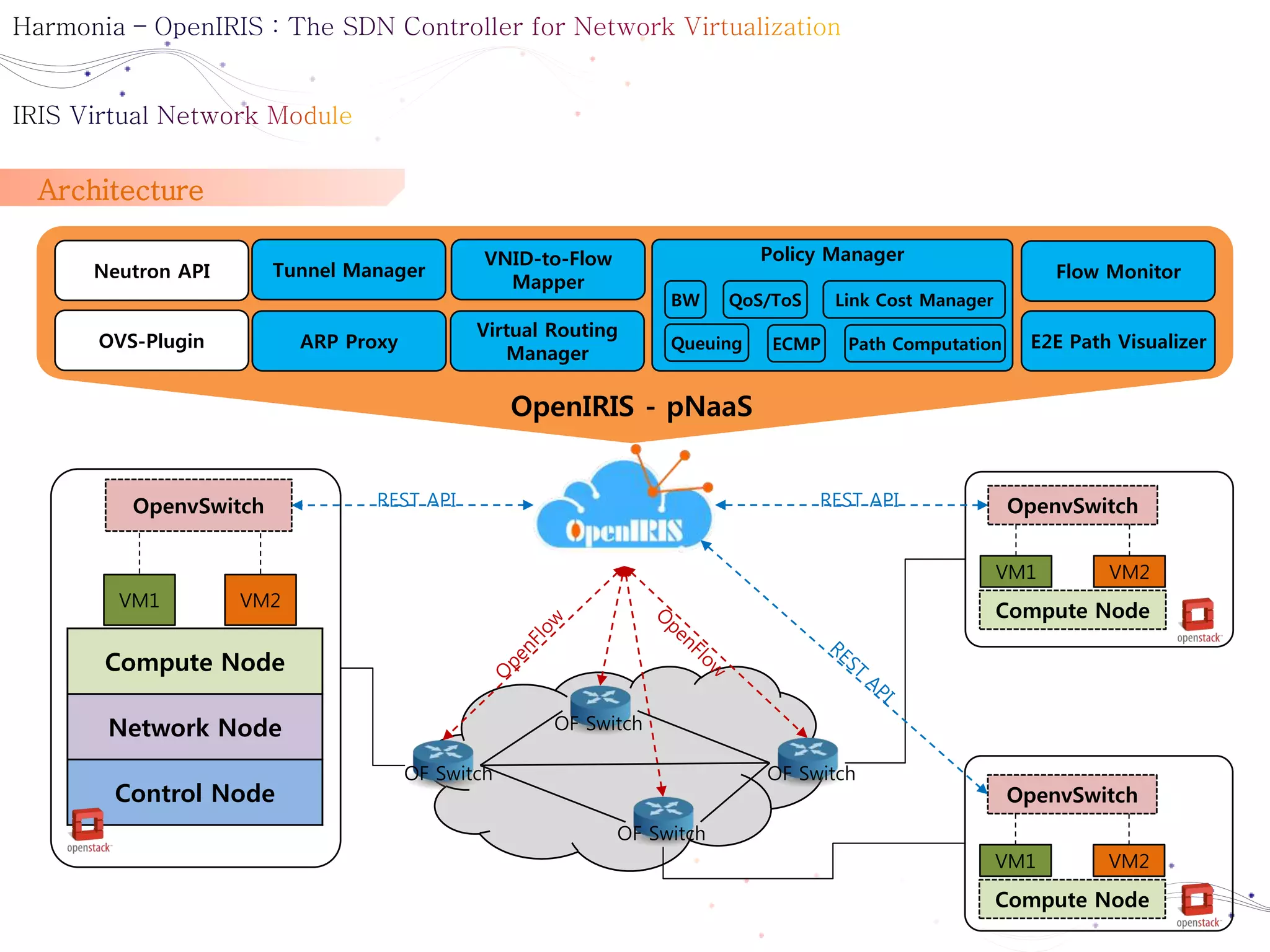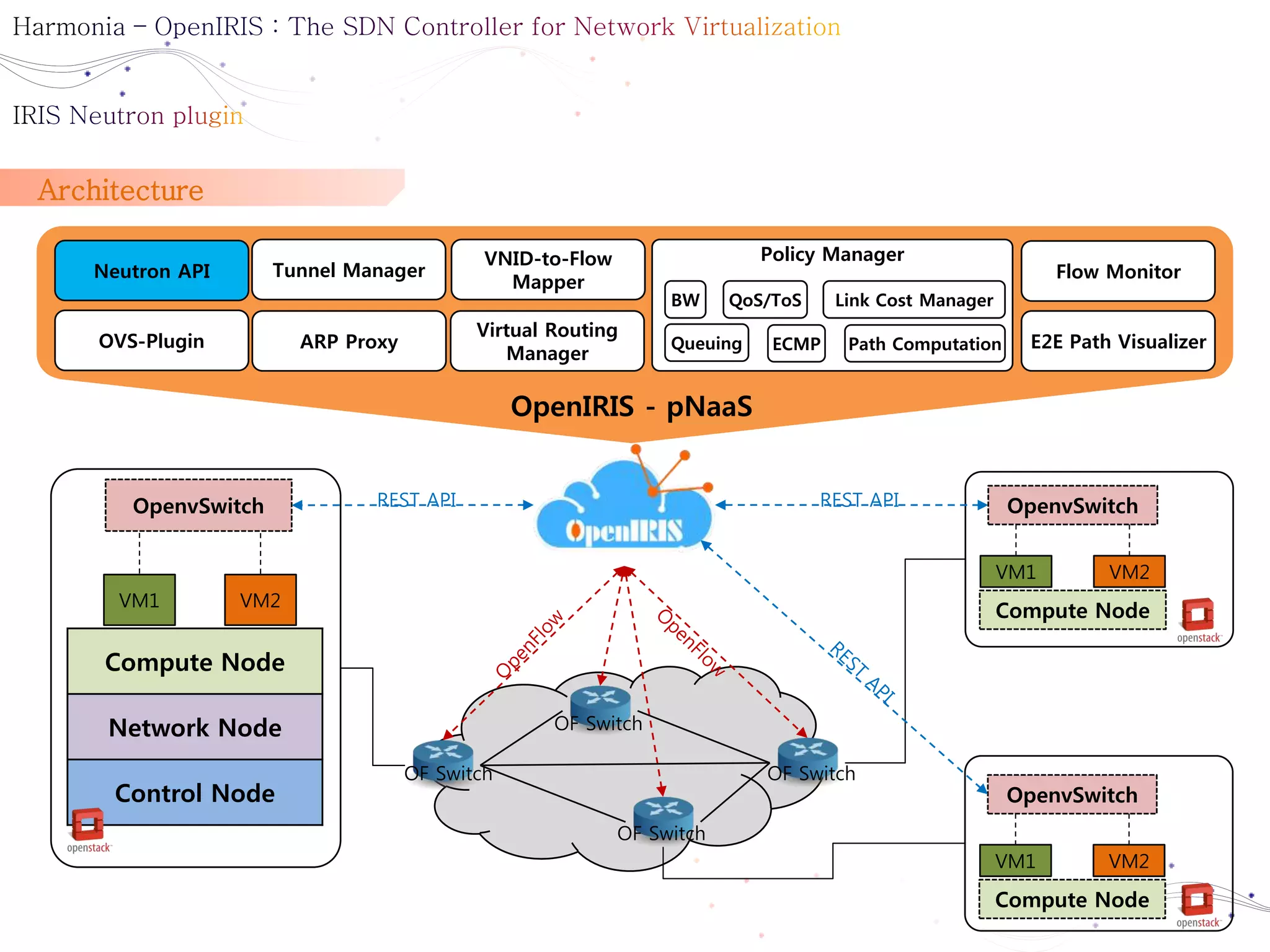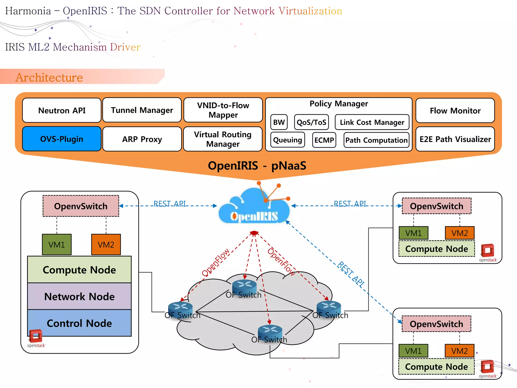 2. Key components of the Neutron-OVS architecture include the Neutron server, OVS agents on compute nodes, and the OVS daemon that implements the switch in the kernel and userspace.
