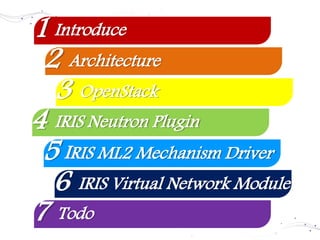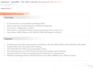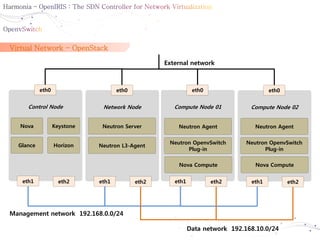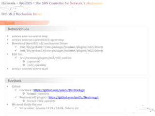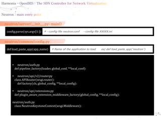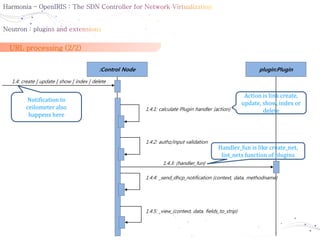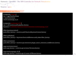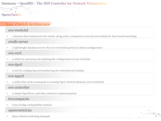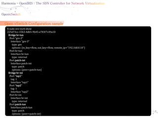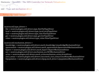 1. The document discusses OpenStack Neutron and Open vSwitch (OVS), describing their architecture and configuration. It explains that Neutron uses OVS to provide virtual networking and switching capabilities between virtual machines.