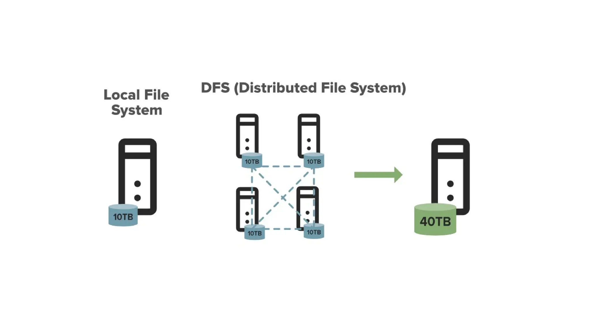 machines each of size 10TB in that case you can store let say 30TB across this DFS as it