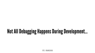 • Types ofErrors & Locations in JavaScript • Debugging and Introspection Tools • node-inspector • VS Code • Remote Debugging Node Processes • node-inspector, VS Code • Vantage • Remote Debugging Front-End JavaScript • Vorlon.JS