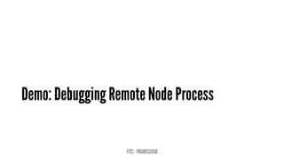 • With built-innode debugger: $ node debug localhost:5858 • With node-inspector: $ node-inspector • With Visual Studio Code • Use Attach launch setting, debug… 
