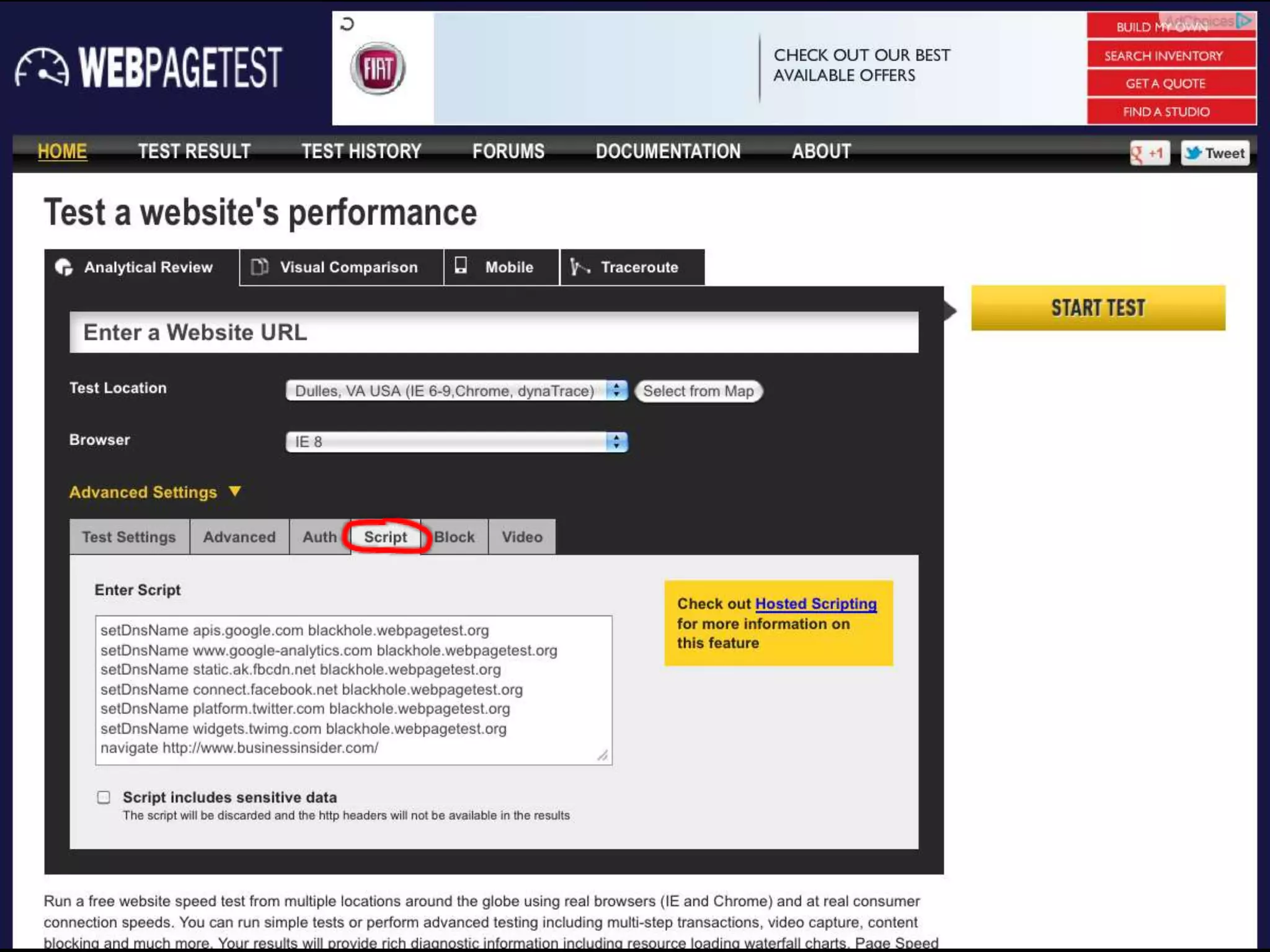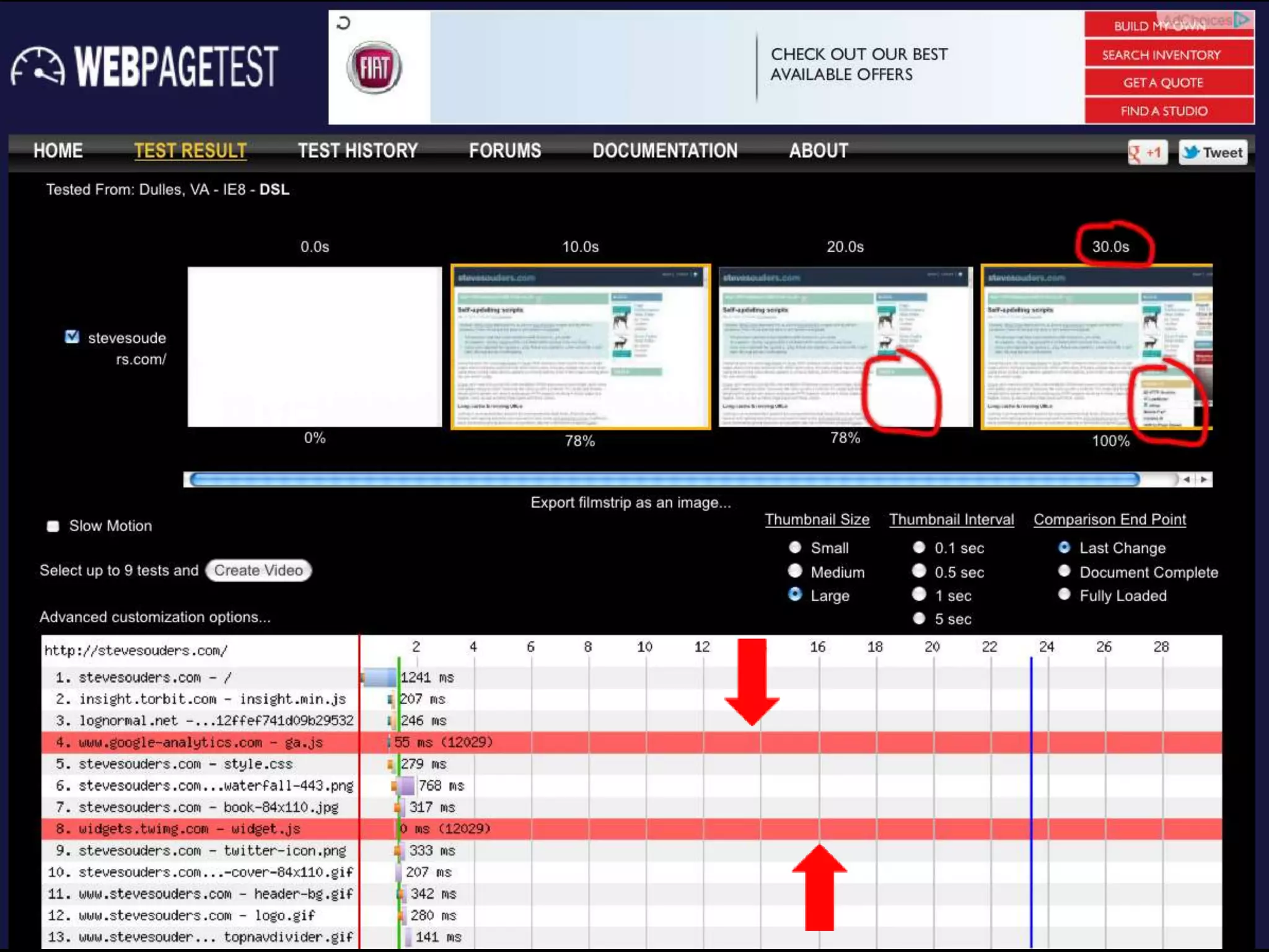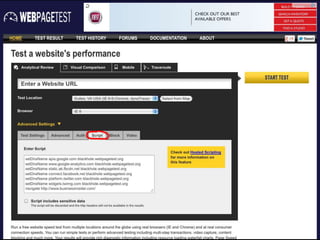 2. Front-end dependencies like social media widgets can cause slowdowns if they fail to load. Blackholing domains in tests can show these slowdowns.