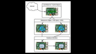 The document discusses the feasibility of running a highly available Drupal setup on a Raspberry Pi cluster. It covers various challenges such as redundancy, microsd card reliability, and database backup, as well as benchmarks for performance and power consumption. Lessons learned emphasize testing changes incrementally and acknowledging network reliability issues.
