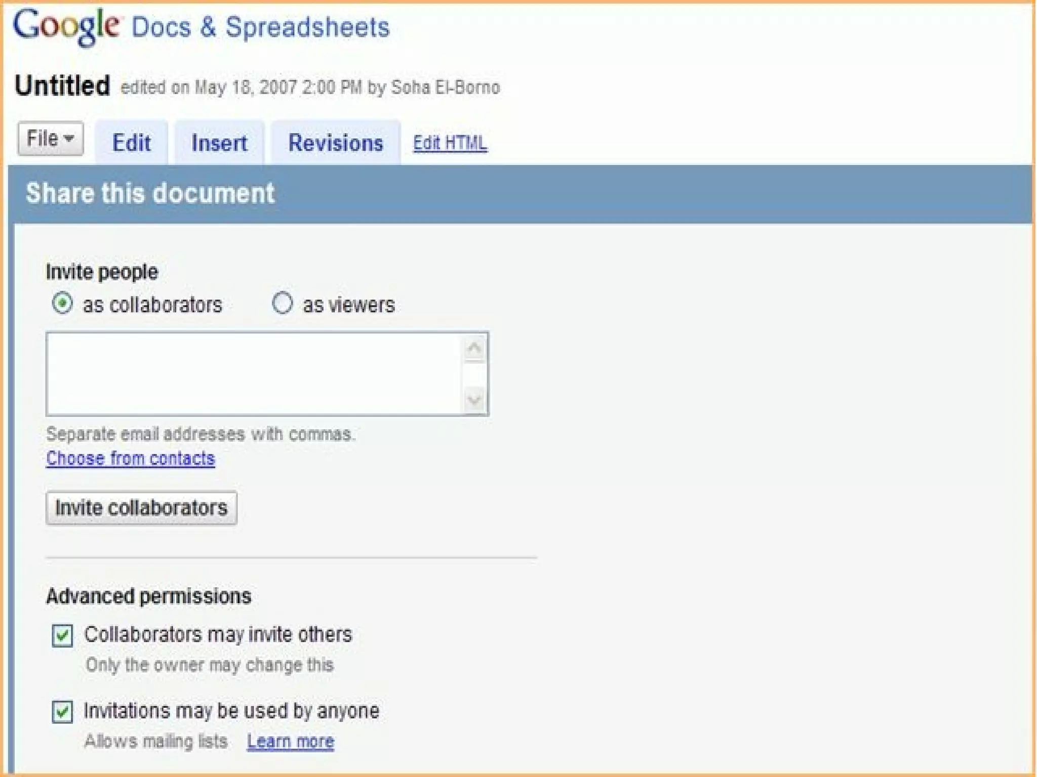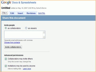- File sharing applications like Google Docs, Dropbox, and Scribd for document sharing.