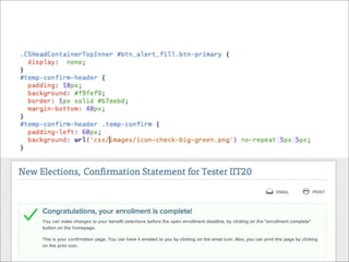 The document is a detailed guide on front-end and back-end coding, focusing on HTML, CSS, and JavaScript within the context of web design. It outlines the structure, style, and behavior of web pages, including the roles of static and dynamic content, as well as CSS rules and selectors. Key topics include document hierarchy, attributes, specificity in styling, and the application of styles through classes and IDs.