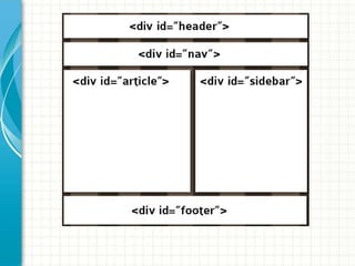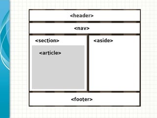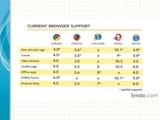 HTML5 is the latest revision of the HTML standard, introducing new tags, improved error handling, backward compatibility, and multimedia capabilities without reliance on plugins. This document outlines the evolution from earlier HTML versions, the timeline of HTML5's development, its new structural elements, and integrated JavaScript APIs that enhance web applications. Additionally, it describes CSS3 features that expand design options, such as rounded corners, shadows, and improved layout control.