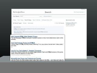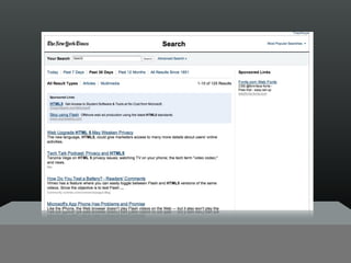 The document discusses the differences between HTML4 and HTML5. It summarizes that HTML5 introduces new semantic elements like <section>, <article>, <aside>, <footer>, and <header> that allow for more explicit organization of content. It also introduces <hgroup> to group heading elements, solving limitations in HTML4 outlines. The focus is on simplifying HTML syntax and making the structure of pages more clear.