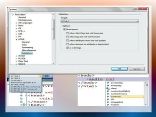 HTML5 Deciphered discusses HTML5 specifications and their development process. It introduces several new HTML5 elements such as <header>, <footer>, <nav>, <aside>, and <section> that provide semantic structure. It also covers new input types, native audio and video, geolocation, and the canvas element for drawing graphics. The document explains how these new features work and their current browser support.
