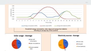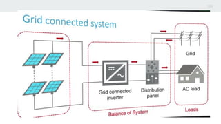 This document summarizes a hybrid smart grid system that uses renewable energy from a microgrid. It discusses trends in solar energy capacity and growth worldwide. It describes types of solar energy systems including home lighting, off-grid, and microgrids. It then outlines the key components of a hybrid microgrid system including PV arrays, batteries, ultracapacitors, connections to the main grid, loads, and meters. It discusses using IOT and real-time data analytics for data acquisition, analysis, visualization, and forecasting of renewable energy export and import. It also mentions design and behavior visualization software and references sources for further information.