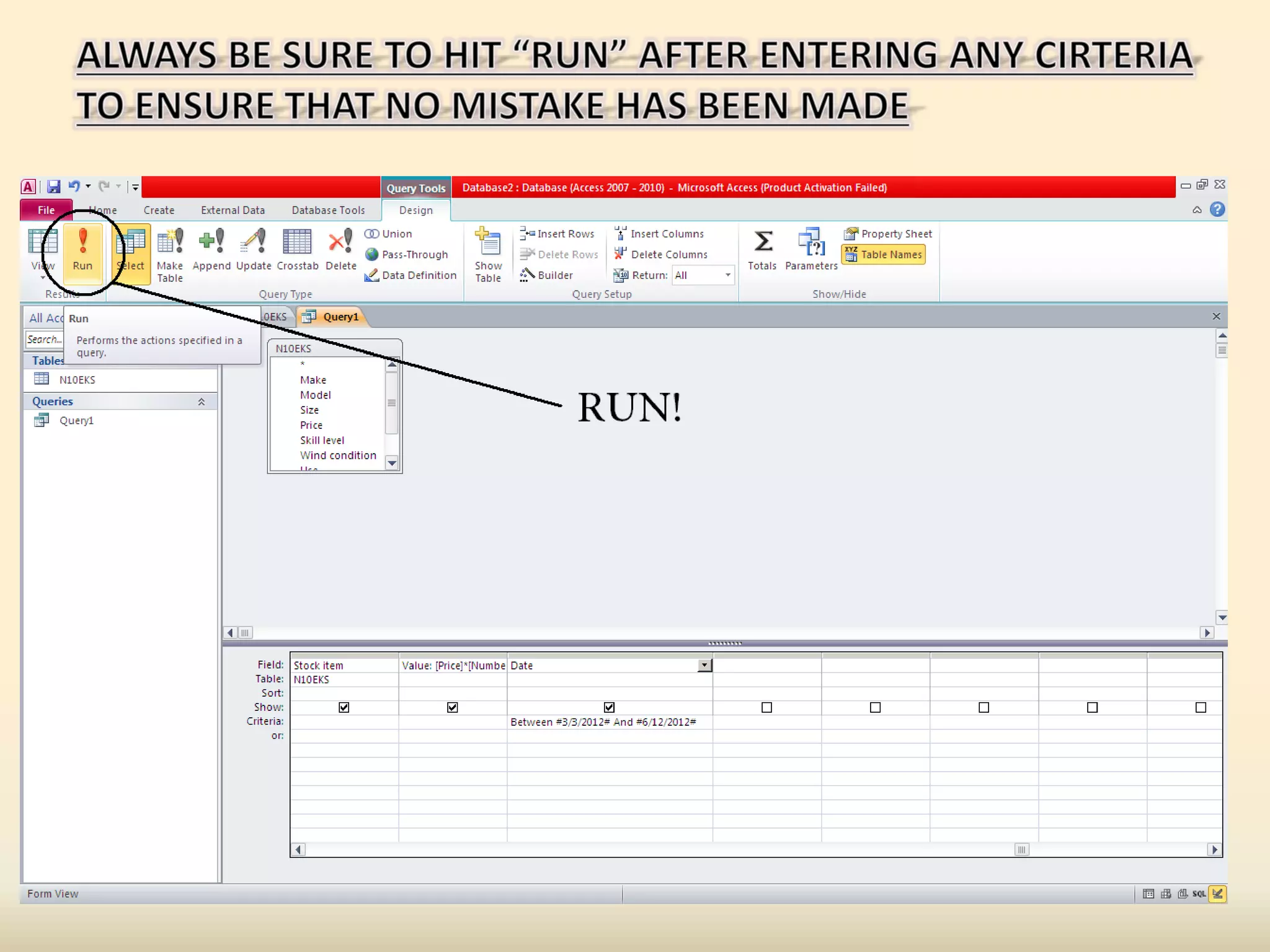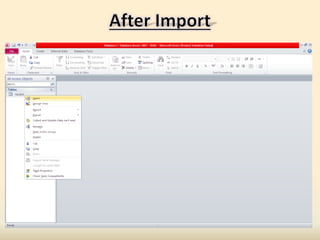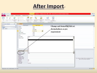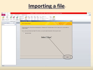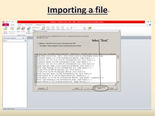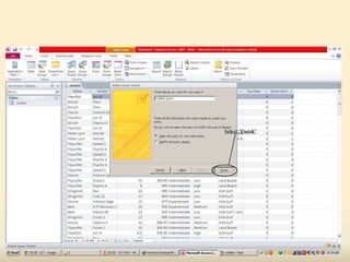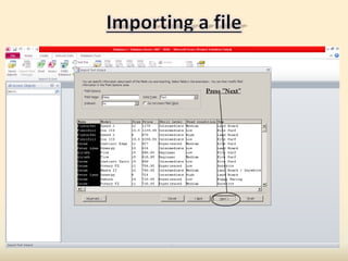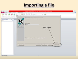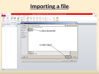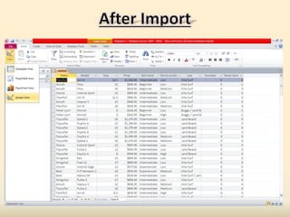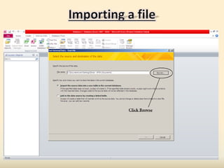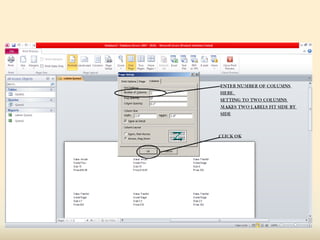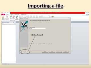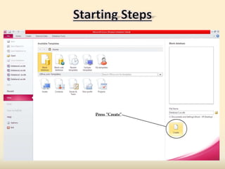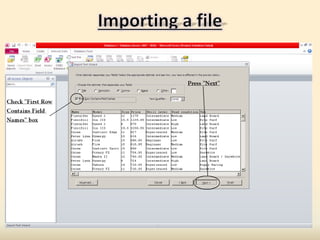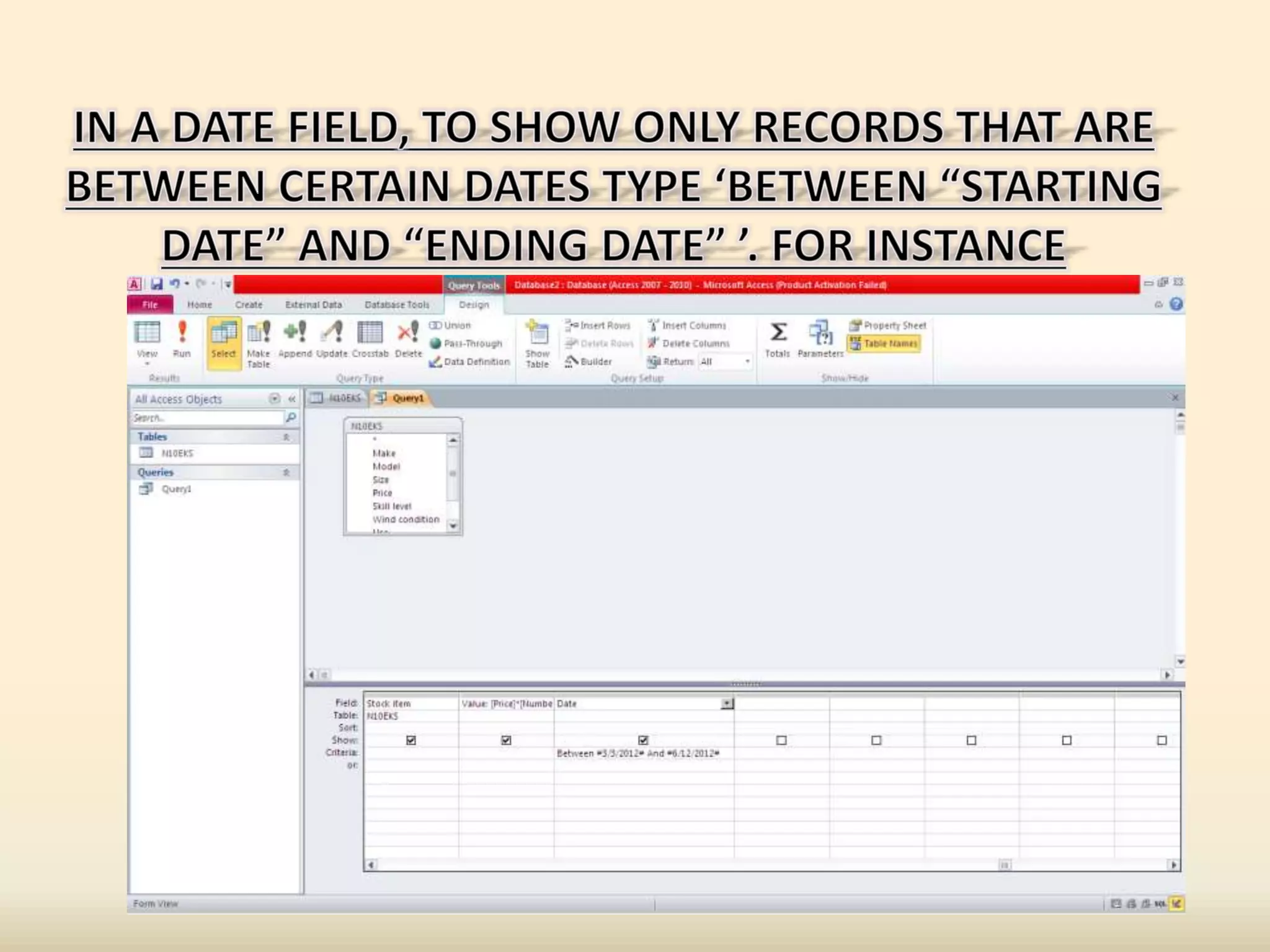 The document provides instructions for setting criteria queries in MS Access to filter records based on specific keywords. It explains how to show records containing a word, not containing it, starting with, ending with, or containing it anywhere by using specific formats in the criteria row. These query techniques help users refine search results effectively.