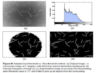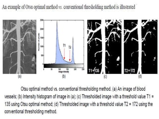 The document presents a seminar on image segmentation by Tawose Olamide Timothy, discussing its challenges, definitions, and significance in image processing and computer vision. It covers various methods and algorithms for image segmentation, including thresholding and edge detection techniques, as well as applications in medical imaging and automated systems. The focus is on improving image analysis through effective segmentation, highlighting the complexity of the process and the need for continued research.