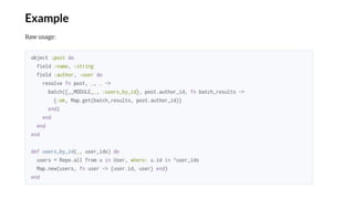 - Their tech stack includes Phoenix, Absinthe, Ecto, React/Apollo Client. Challenges included access control, evolving schemas, batching queries, and distributed tracing.