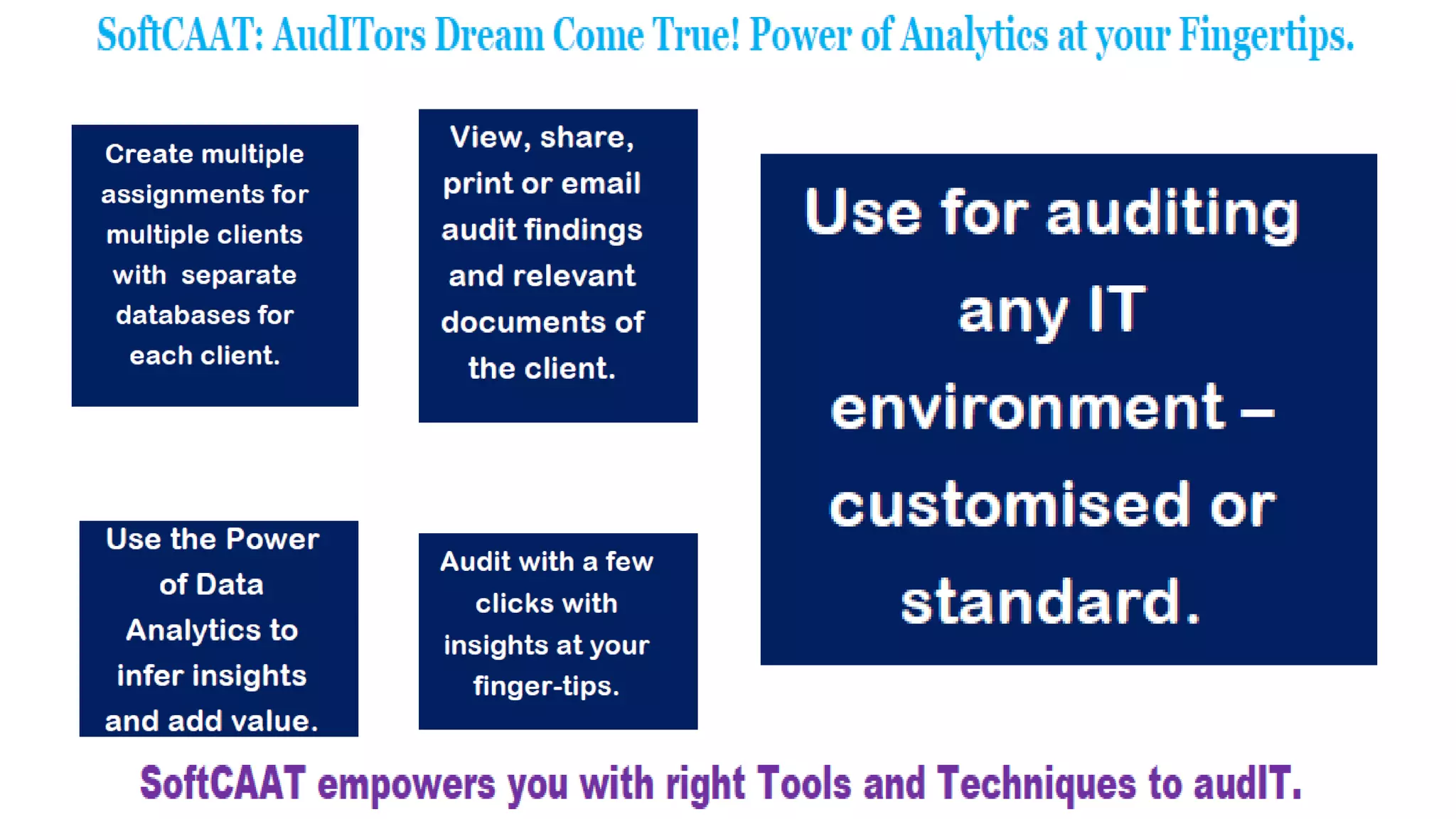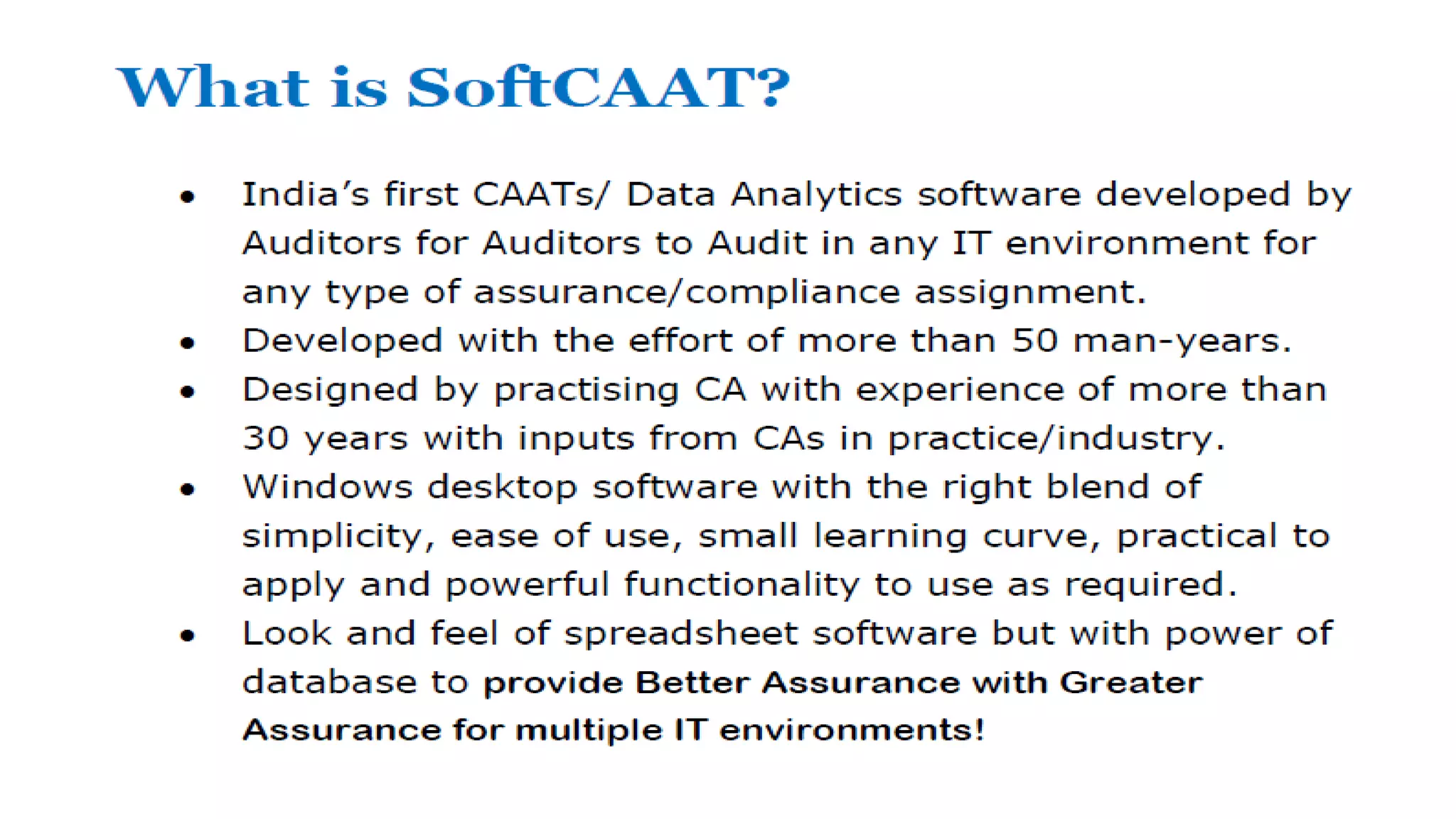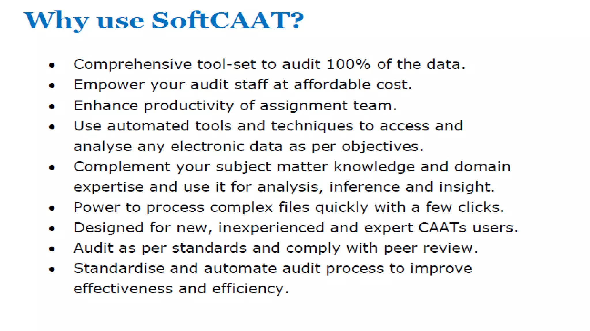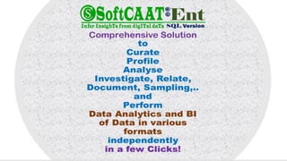 Softcaat Ent SQL is a comprehensive data analytics software designed for auditors and professionals to simplify and enhance the process of analyzing large volumes of data across various formats. It provides powerful tools for identifying irregularities, performing audit tests, and maintaining an auto documentation trail for accountability. With its user-friendly interface resembling spreadsheet software, it empowers users to leverage SQL capabilities to deliver valuable insights and improve efficiency in their auditing tasks.