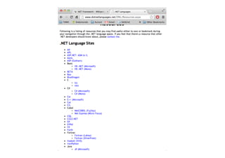 This document provides an introduction to .NET and Core C# programming. It discusses the .NET Framework, Common Language Infrastructure (CLI), Common Type System (CTS), Common Language Specification (CLS), and Common Intermediate Language (CIL). It also covers Mono, building and running C# applications on different platforms, and using various IDEs like Visual Studio.