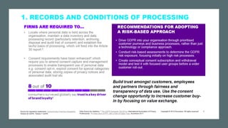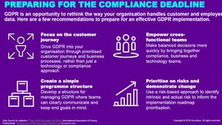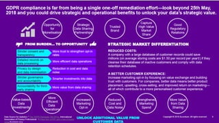 The document provides an introduction to the General Data Protection Regulation (GDPR). It defines personal data and data privacy, explaining that the GDPR aims to strengthen data protection for individuals in the EU. It outlines key areas the GDPR covers such as consent, transparency, profiling, data transfers, and rights of individuals. It discusses penalties for non-compliance, which include fines of up to 20 million Euros or 4% of annual global turnover. The document provides an overview of the GDPR's requirements and changes organizations need to make to be compliant, such as conducting data audits and impact assessments, and establishing governance frameworks with accountability.