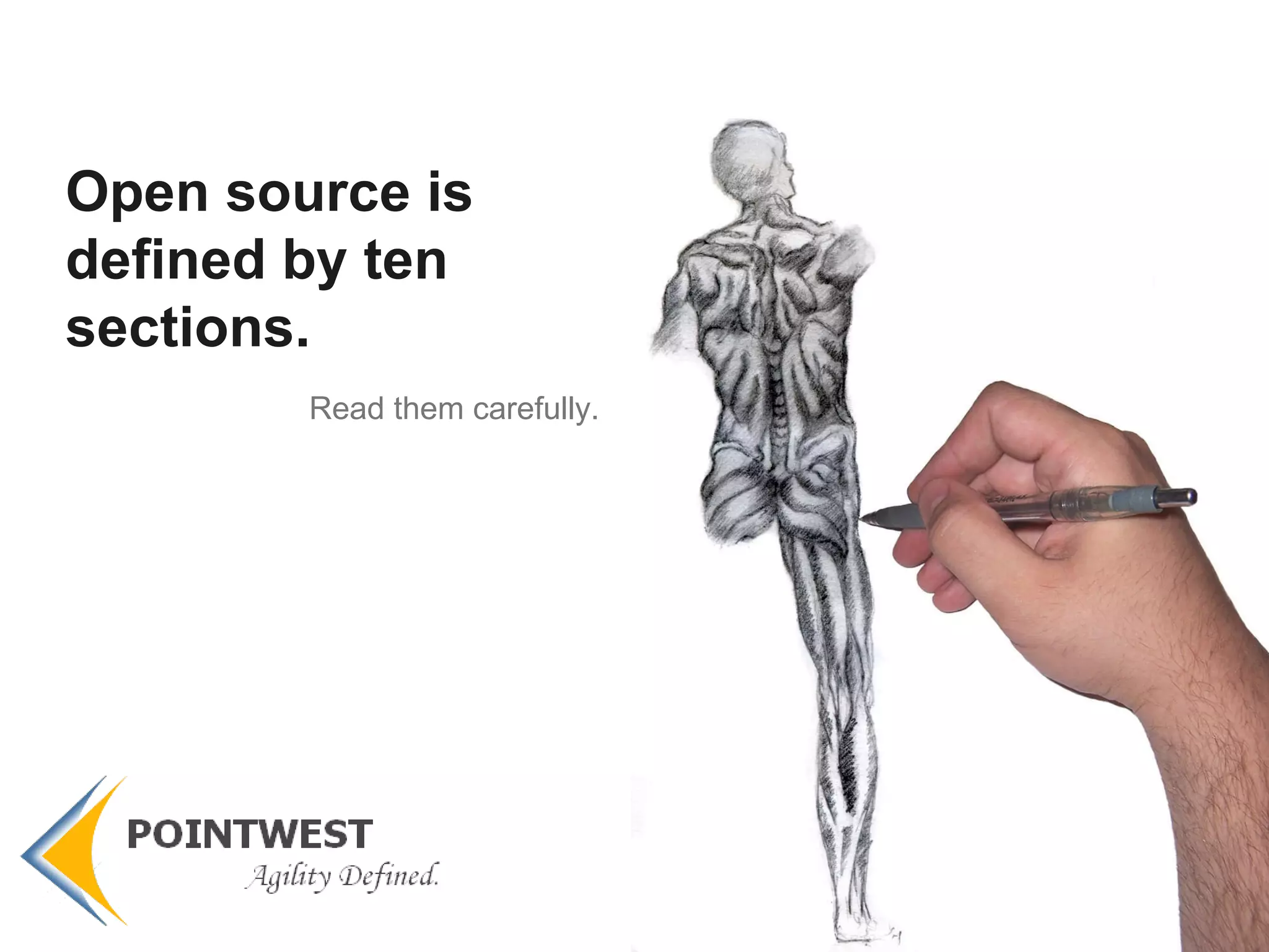 This document provides an overview of free and open source software licenses, detailing their four fundamental freedoms, advantages like better quality and lower costs, and challenges such as intellectual property concerns. It explains different types of licenses (permissive, weakly protective, and strongly protective) and stresses the importance of GPL compatibility for businesses using open source software. The final recommendation is to consult a lawyer and carefully select components that align with business needs while considering the implications of open source licensing.