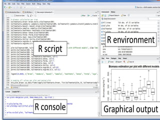 • R environment: This space displays the set of external elements