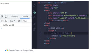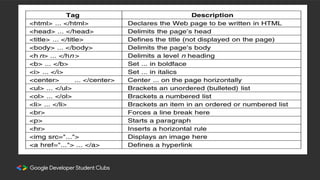 The document provides a comprehensive overview of web development, detailing aspects such as web technologies (HTML, CSS, JavaScript), their purpose, and relevant coding examples. It includes explanations of HTML elements, CSS styles, and JavaScript functions alongside practical examples and tips. Additionally, it touches on web design principles and best practices for creating interactive and well-structured webpages.