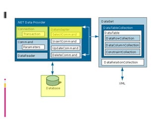 ADO.NET  Keeps alocal virtual copy of the database in your application  All of the generic classes for data access are stored in the System.Data Namespace.