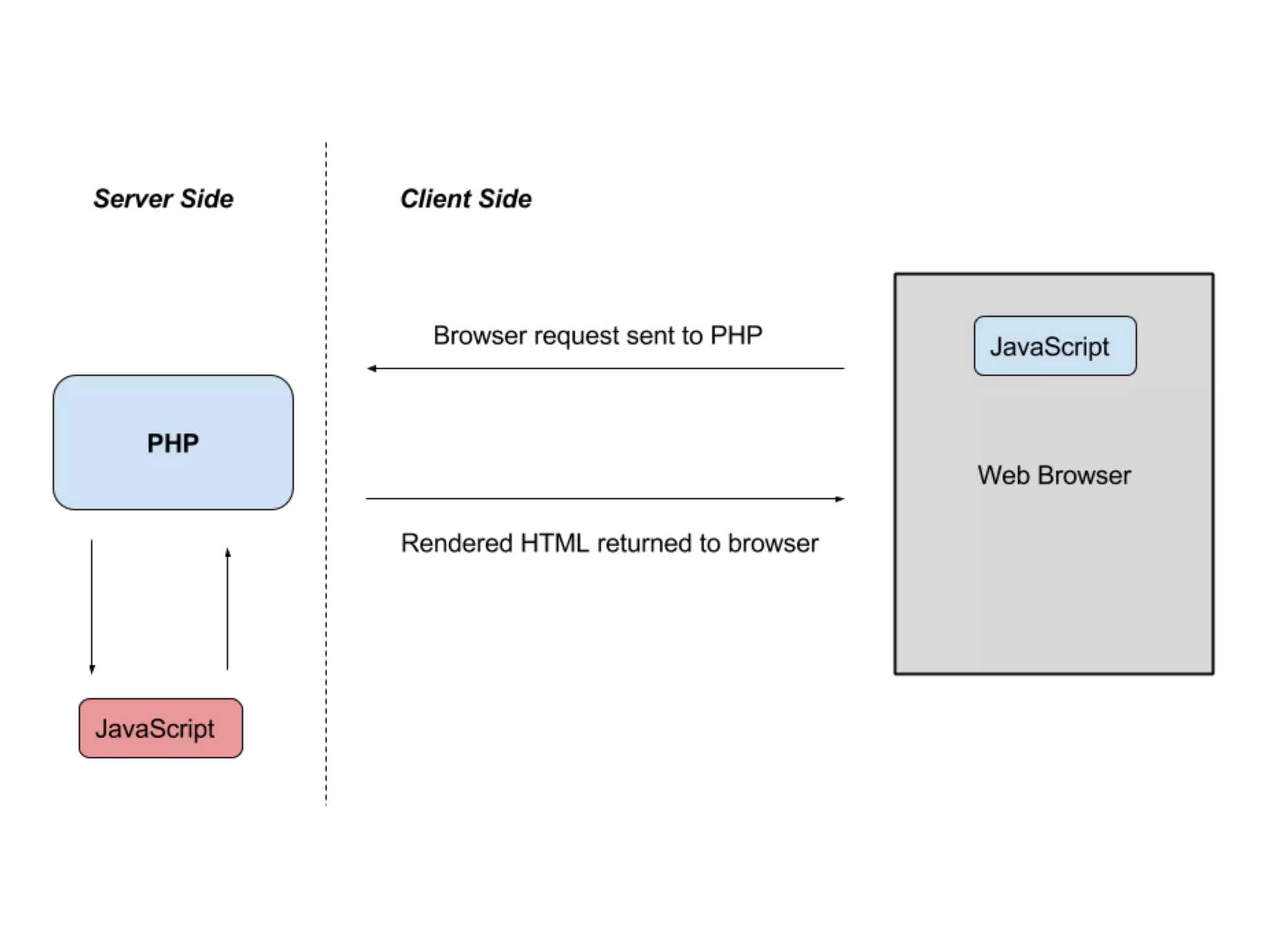 - It uses PHP to execute JavaScript (Node.js) on the server, enabling the use of modern front-end technologies like React while retaining WordPress for content management.