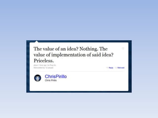 This document discusses open iteration, which involves continually creating and deploying new versions of a product with transparency and user engagement. It outlines different software development methodologies like waterfall, agile, and cowboy coding. It also discusses launch strategies like minimum viable product. Open iteration allows evolving a product based on user feedback through rapid releases. Pros include user-guided priorities, but cons include potential lack of initial business validation and bugs. Takeaways include enabling feedback, driving towards MVP, and having analytics and scalability. Stealth mode is overrated compared to strong execution.