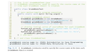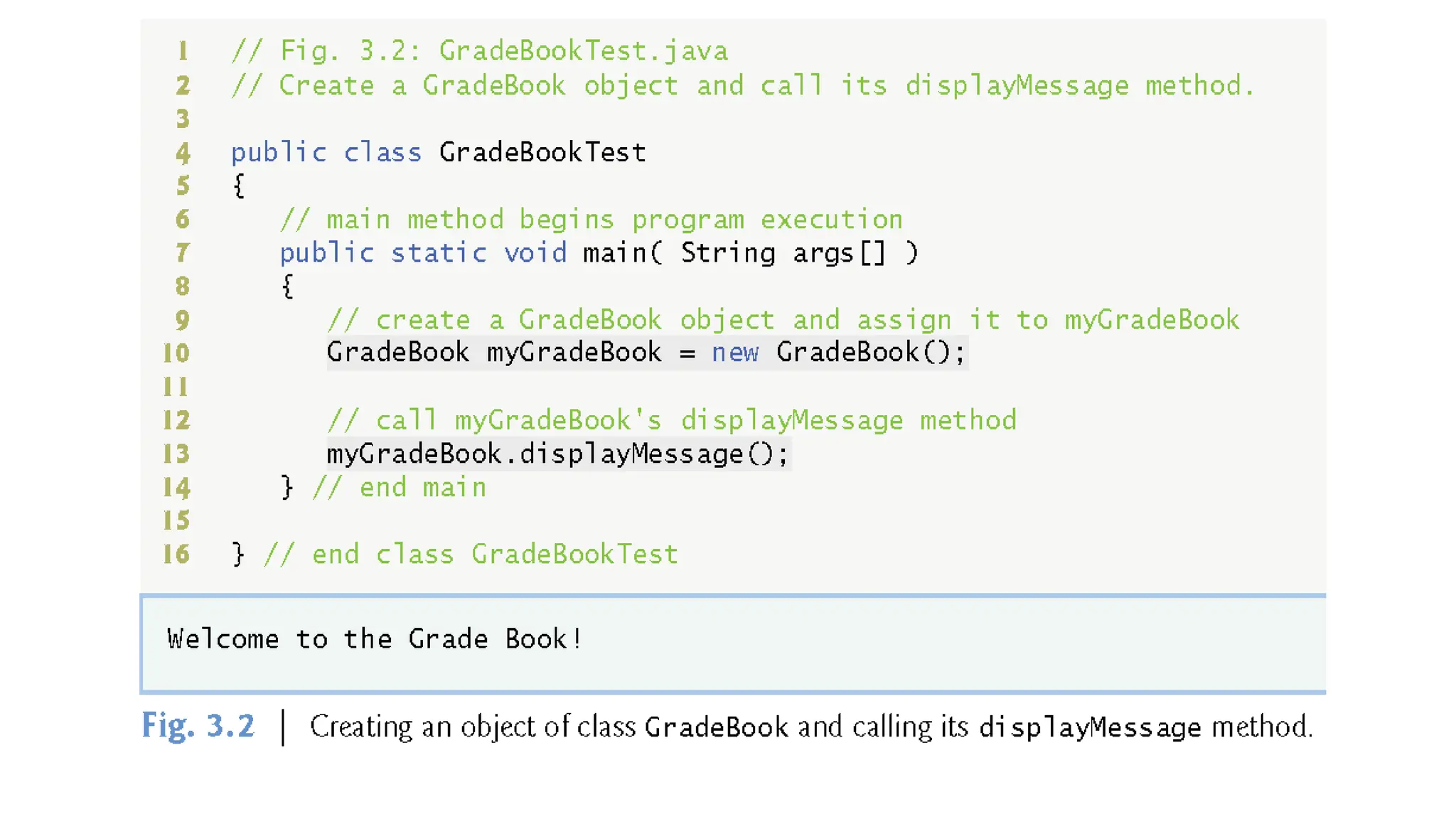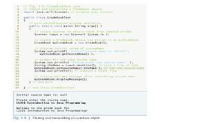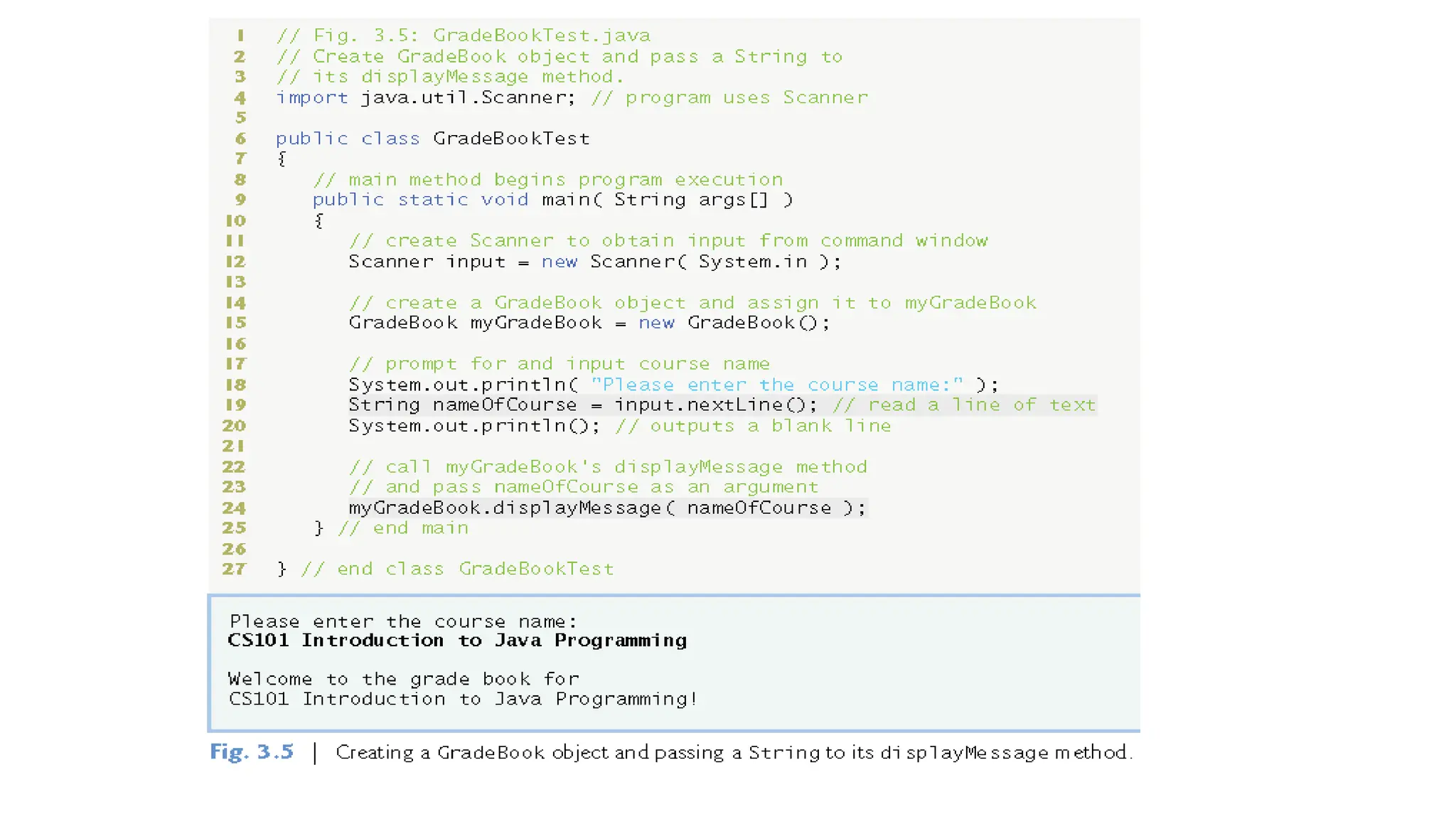 Fig. 3.8 creates an object of class GradeBook, and the variable myGradeBook contains a reference