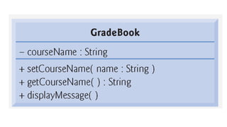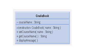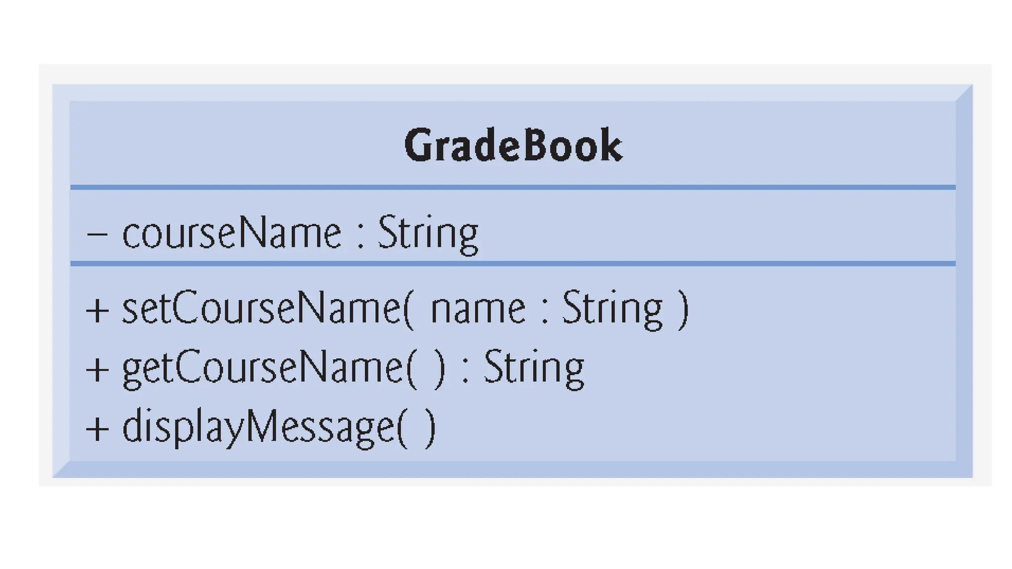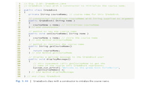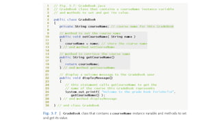 • class GradeBook (Fig. 3.7) maintains the course name as an instance variable