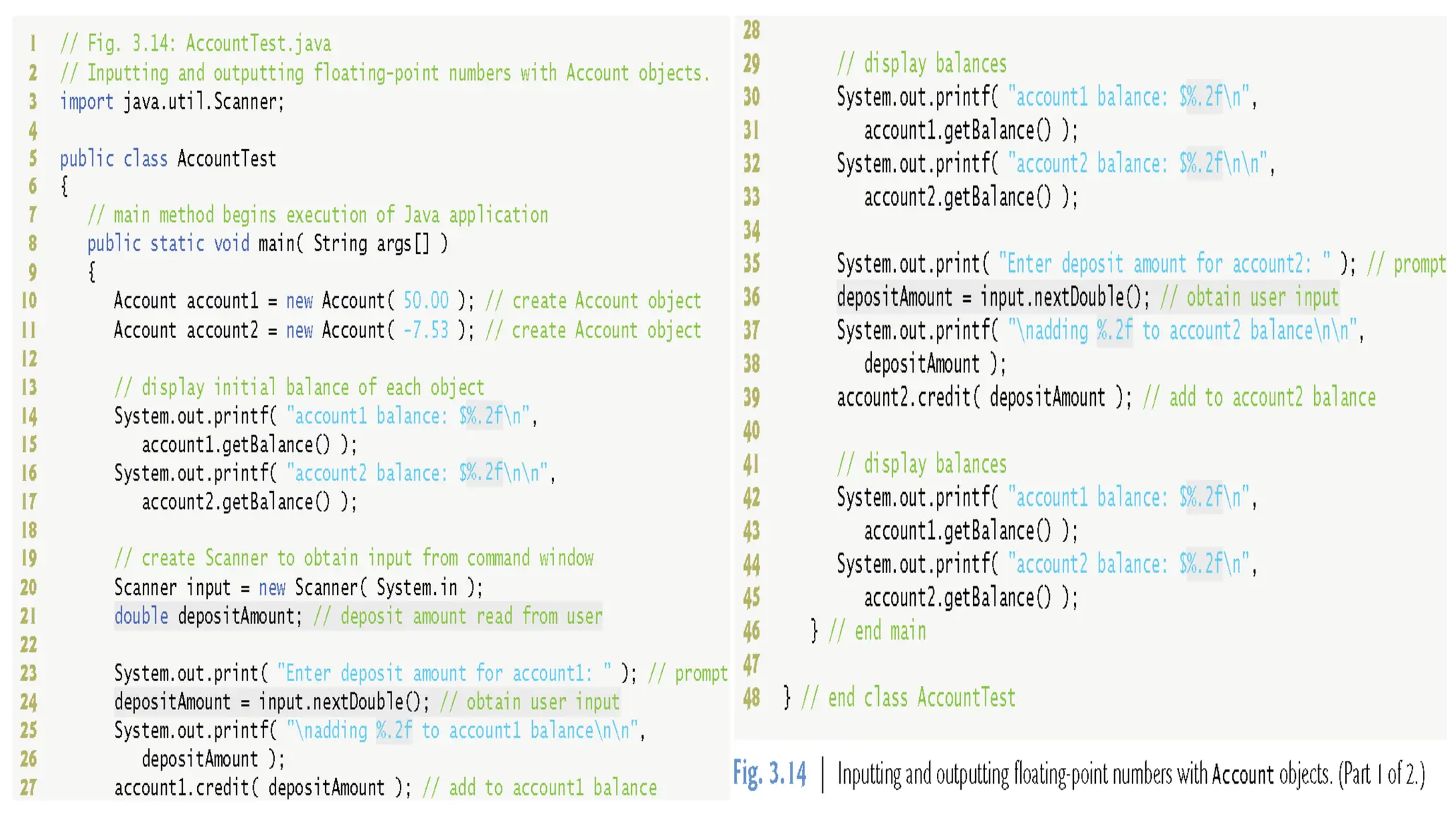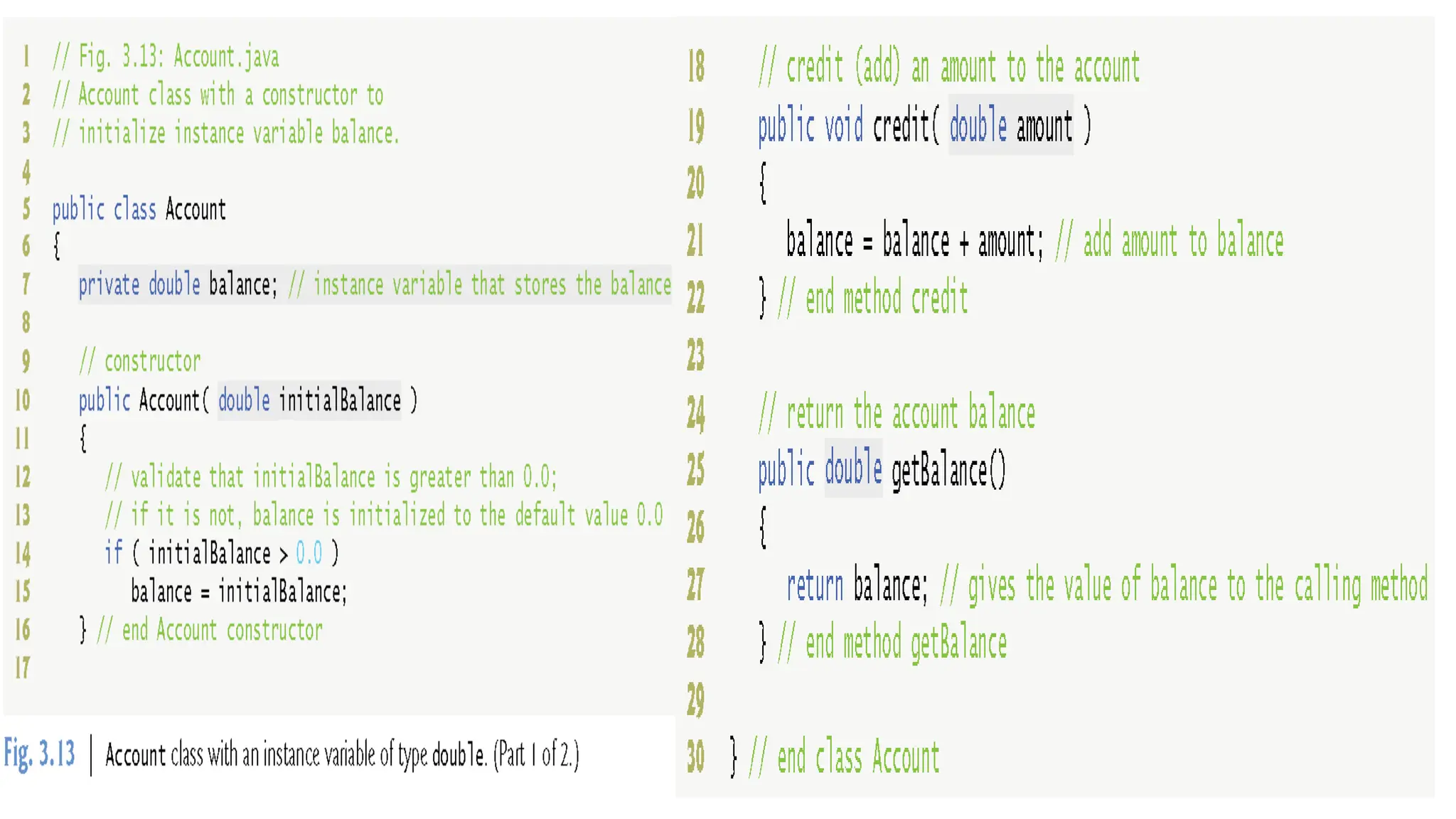 • Application (Figs. 3.13–3.14) contains a class named Account (Fig. 3.13)