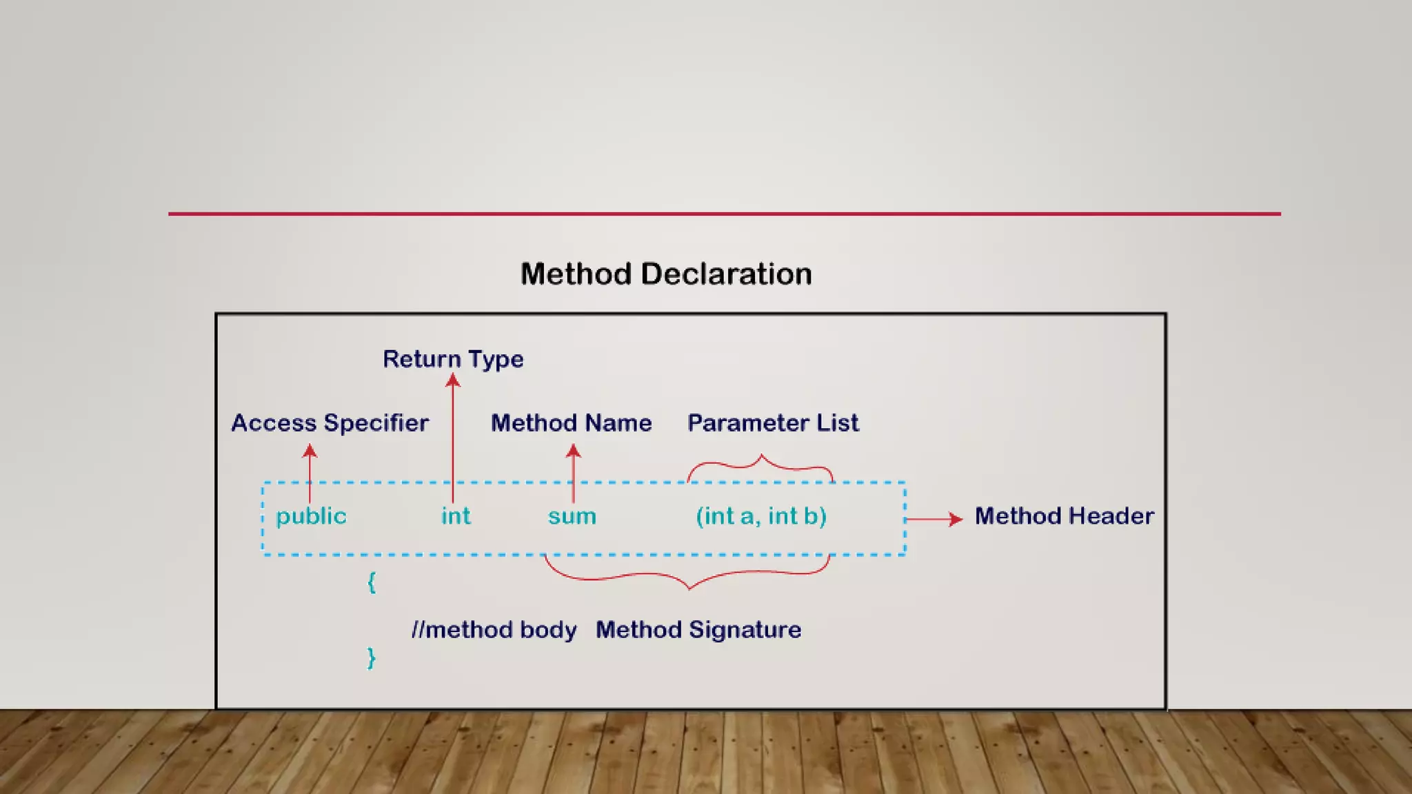 methodName - It is an identifier that is used to refer to the particular method in a program.